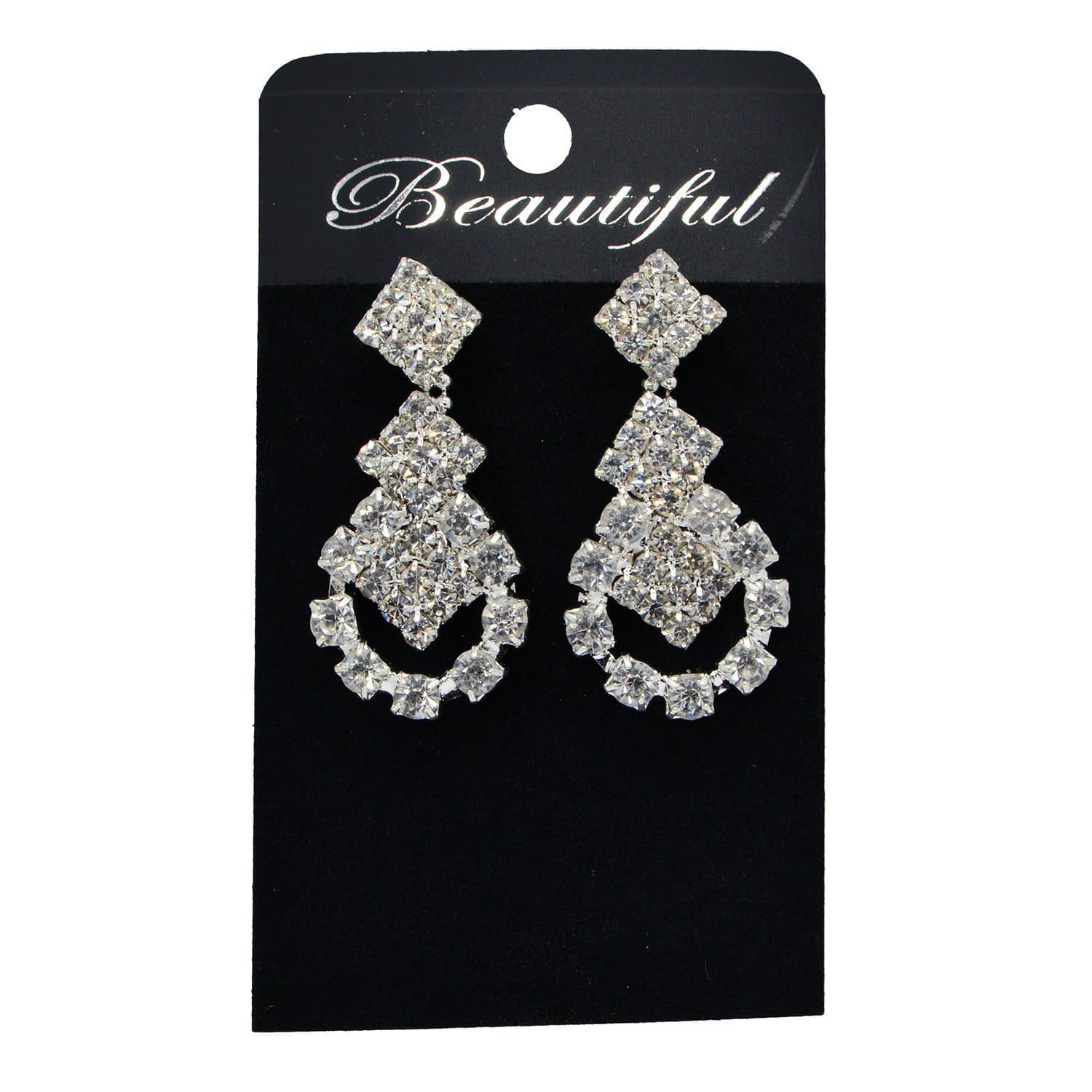 Toptan Gümüş Renk Abiye Kare Yuvarlak Desenli Şerit Küpe 826