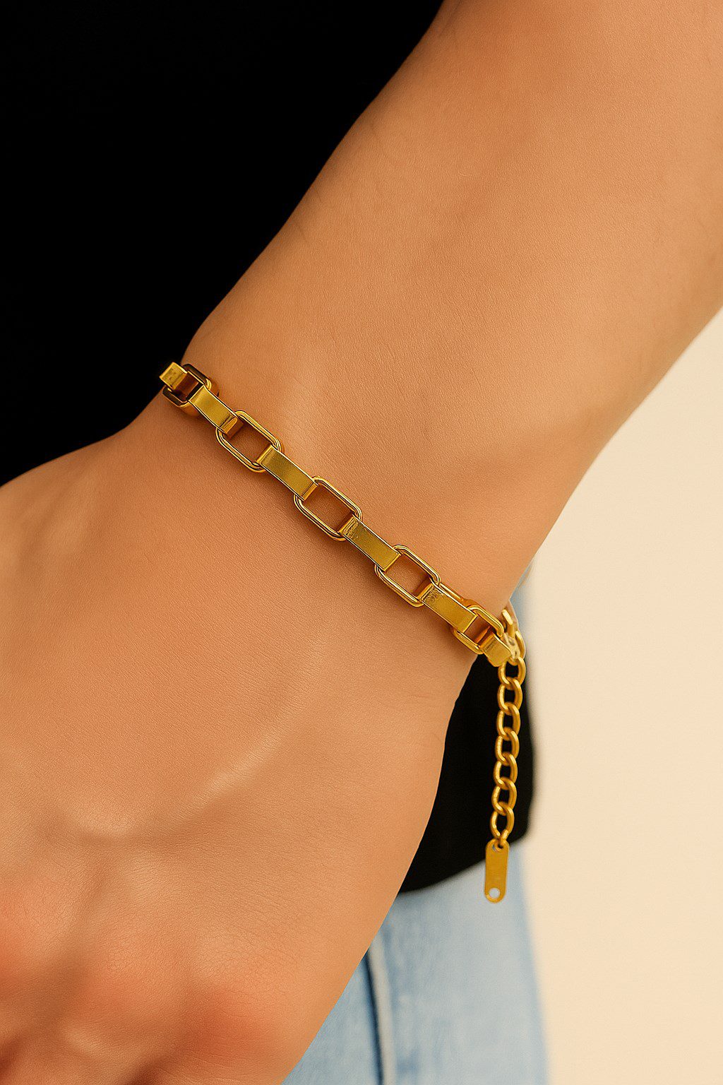Kararma yapmaz Altın Kaplama Bileklik 17 cm artı 5 cm uzatma toplamda 21 cm dir.