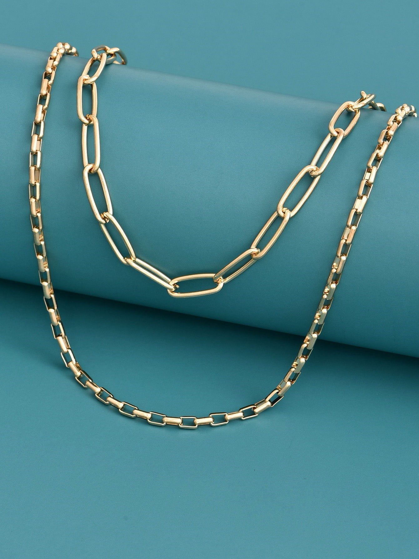 Toptan Altın Rengi Gerdanlık Kolye Kadınlar İçin Katlı Kolye Küp Dikdörtgen Zincir