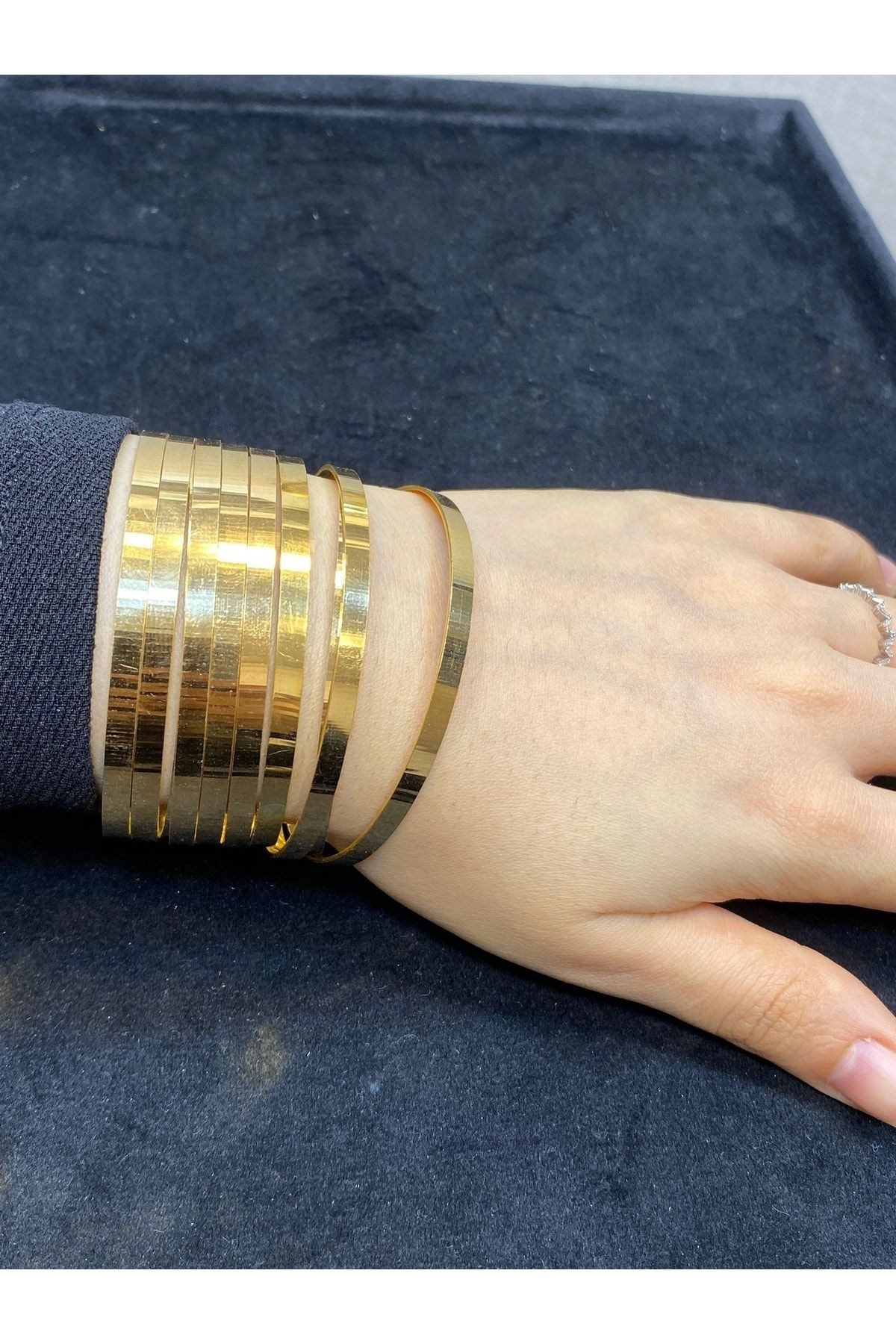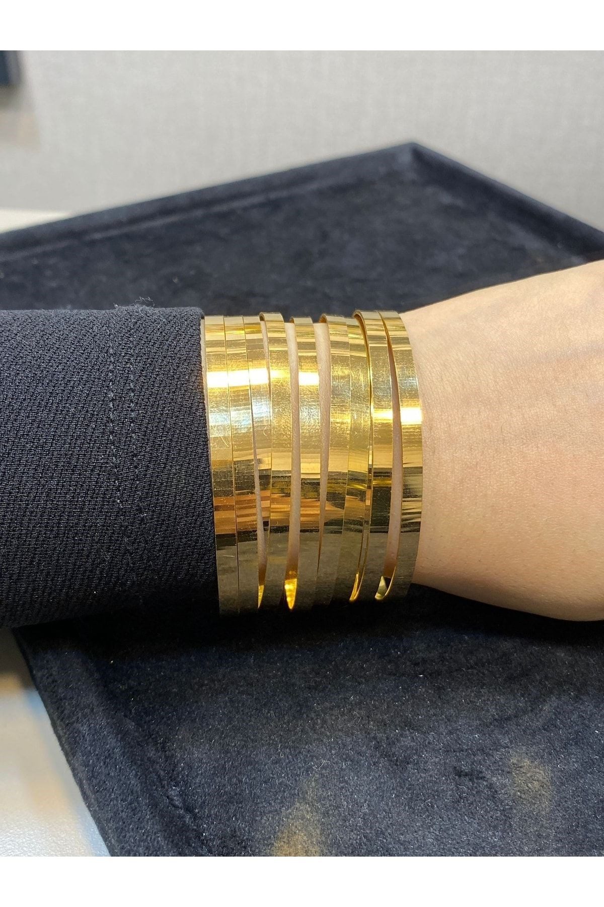 Toptan Altın Renk 3 Adet Kalın Ajda Bilezik, Bileklik – 3154-3