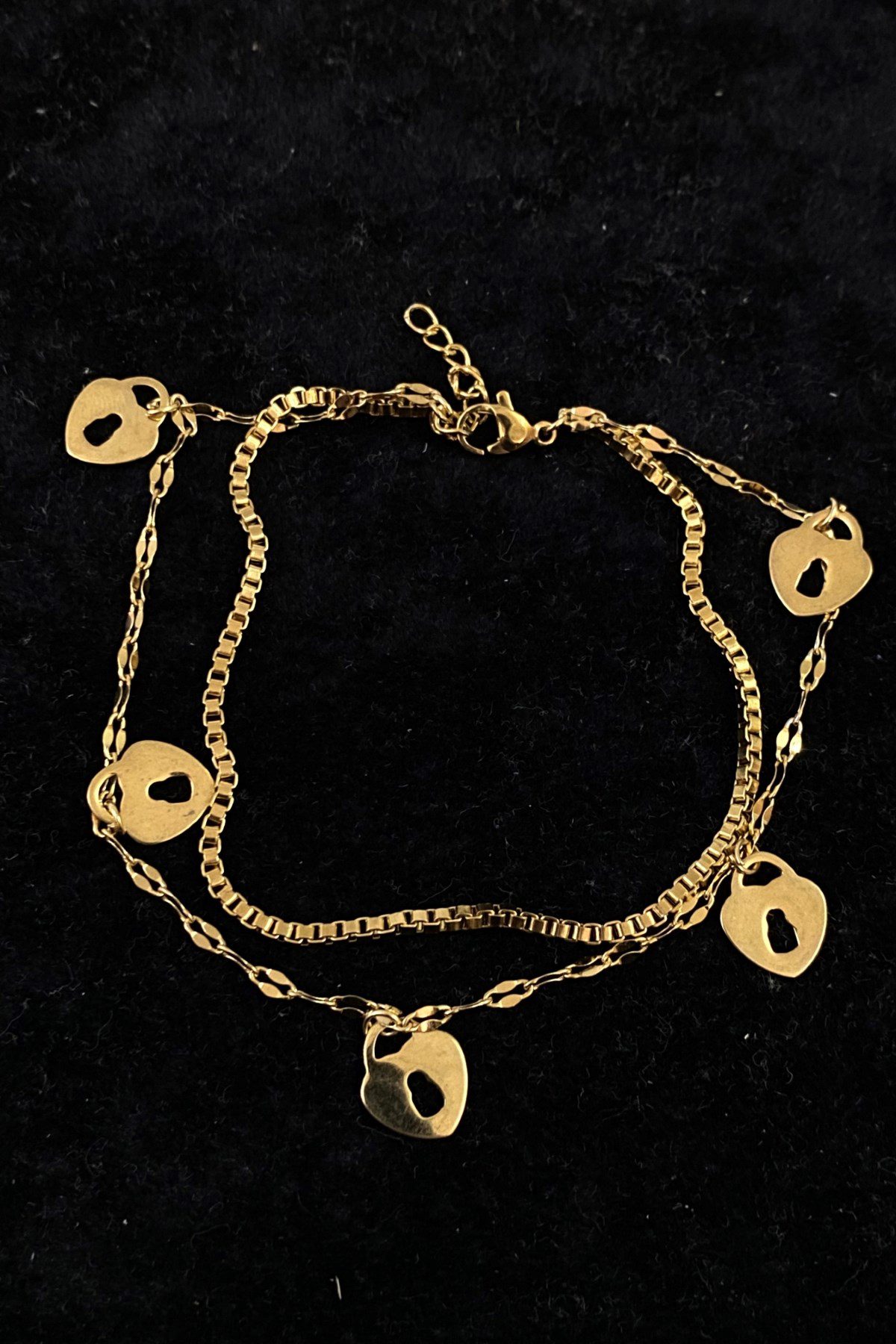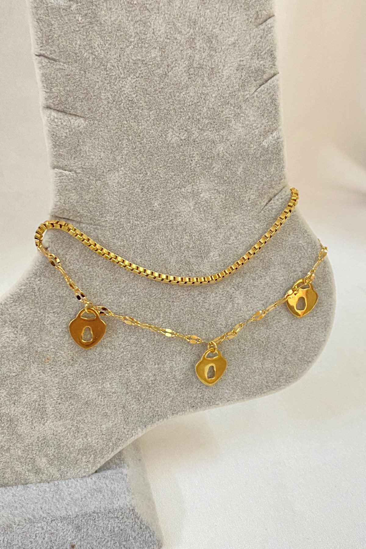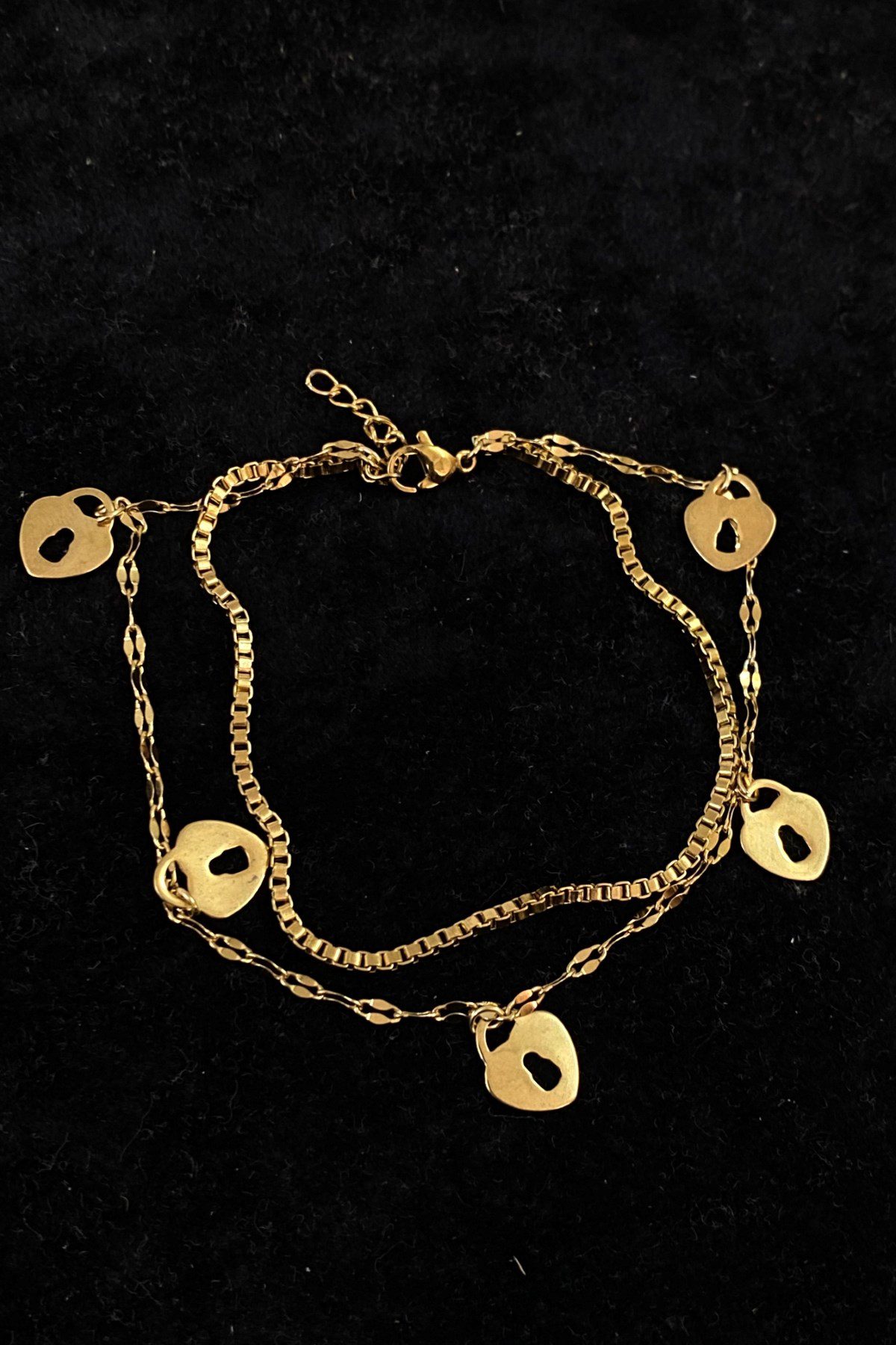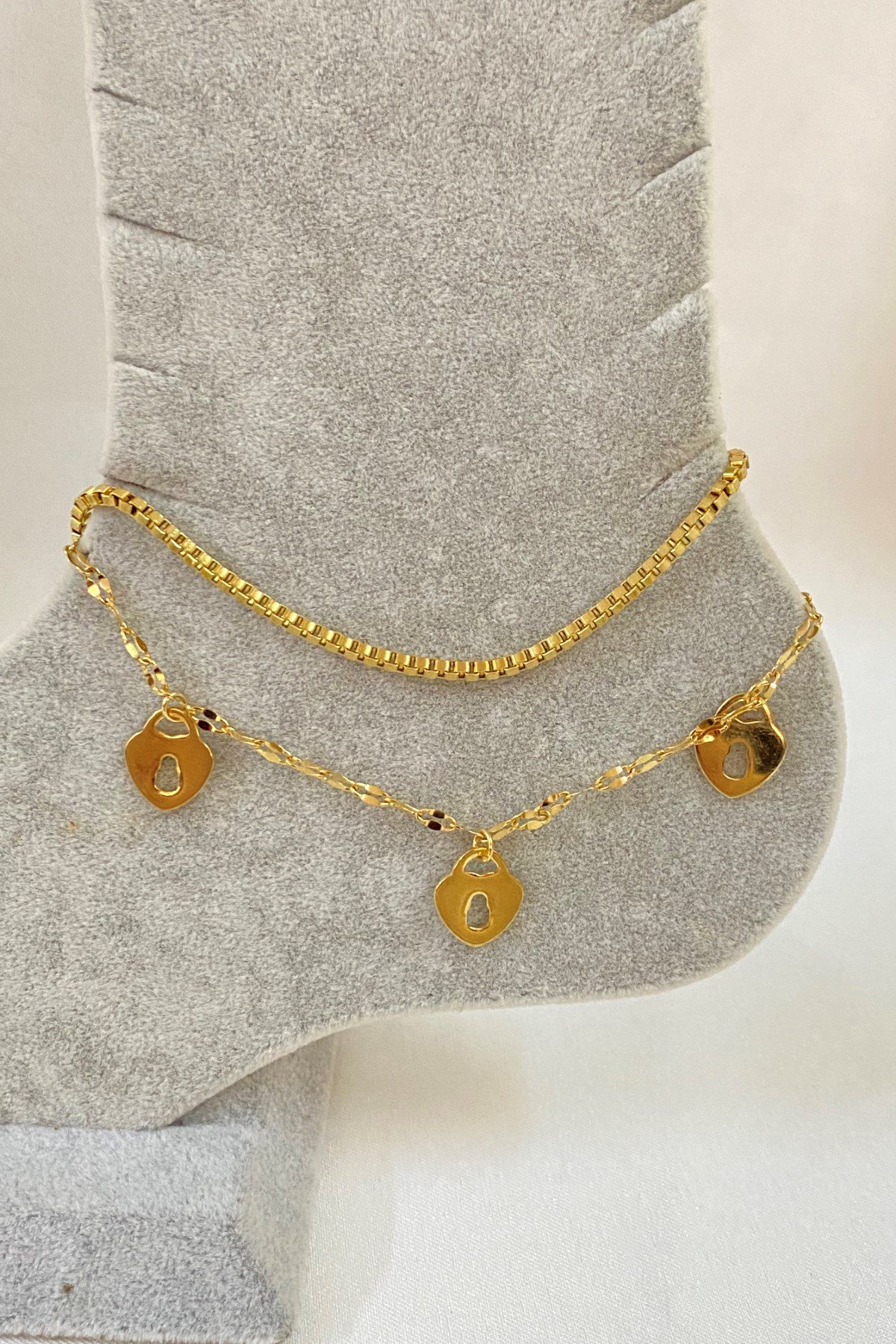 Toptan Altın Renk Anahtar Deliği Kalp Model Asansör Ve Singapur Zincir Çelik Halhal – 3235
