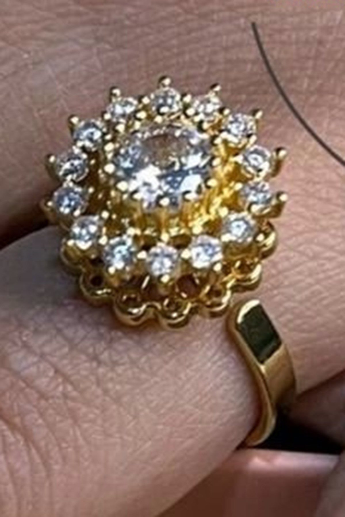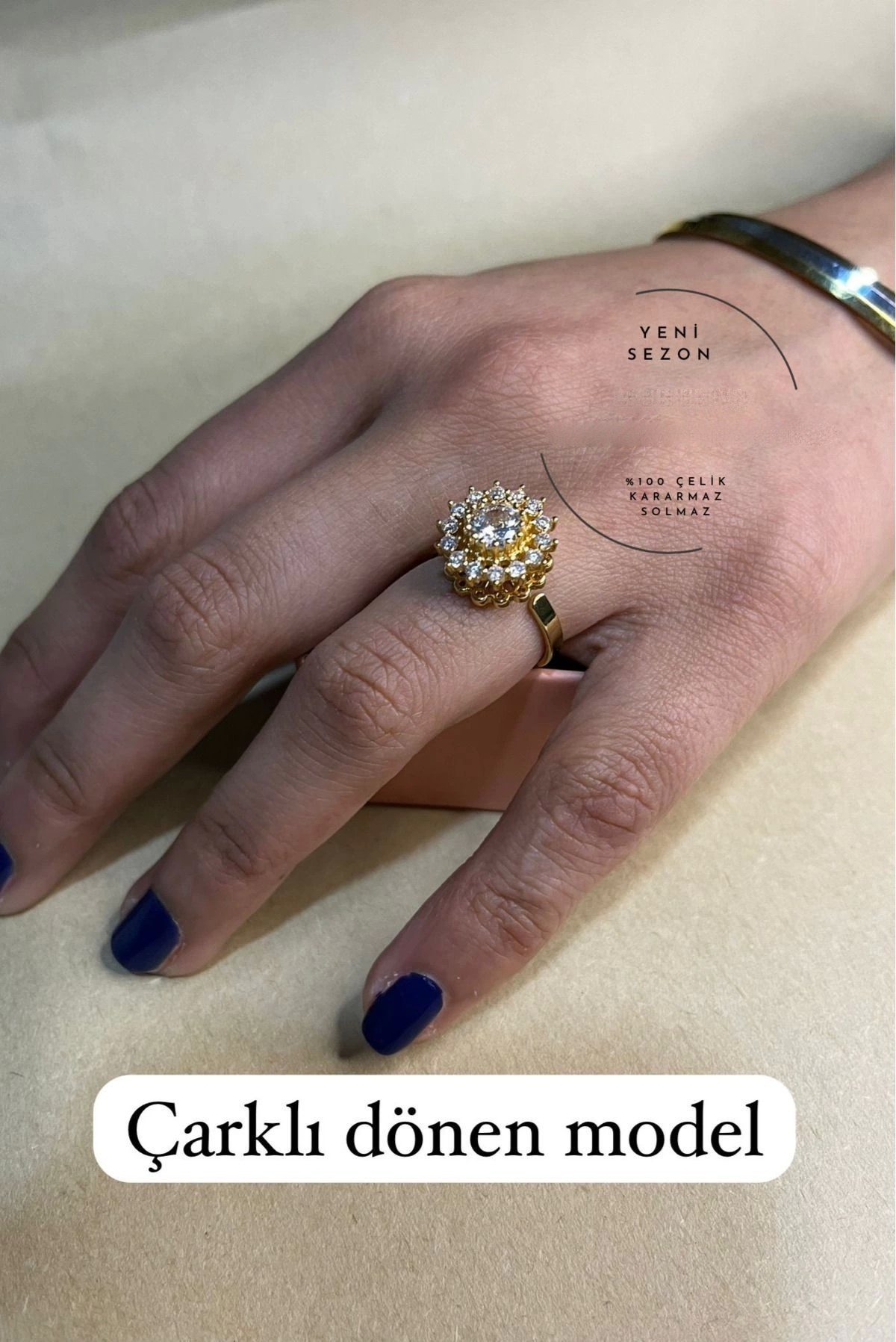 Toptan Altın Renk Ayçiçeği Model Zirkon Taşlı Çelik Ayarlanabilir Dönen Çelik Yüzük – 3104