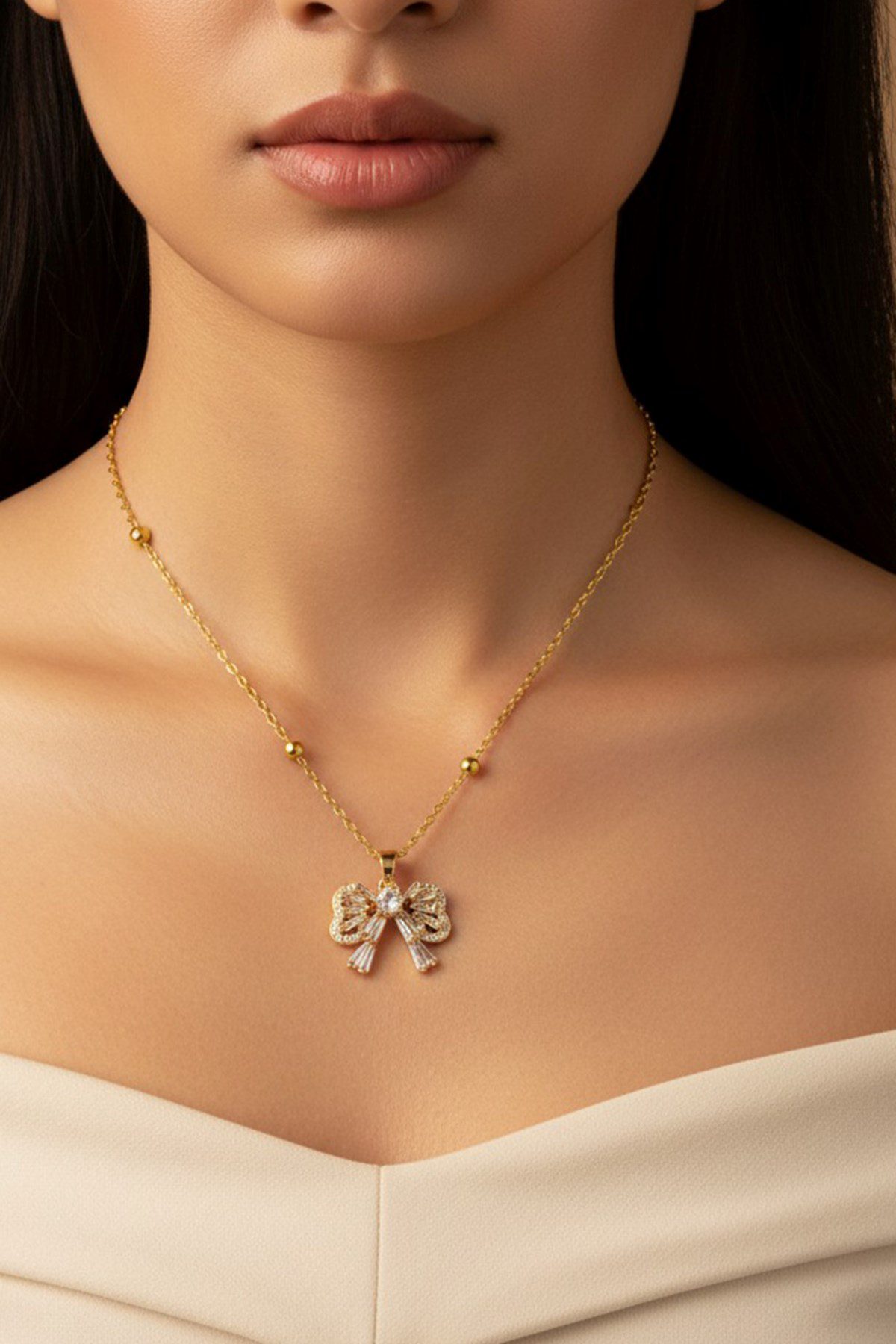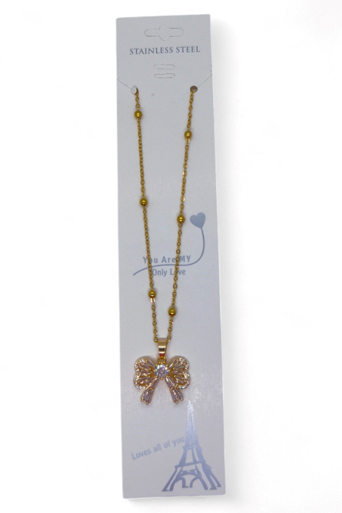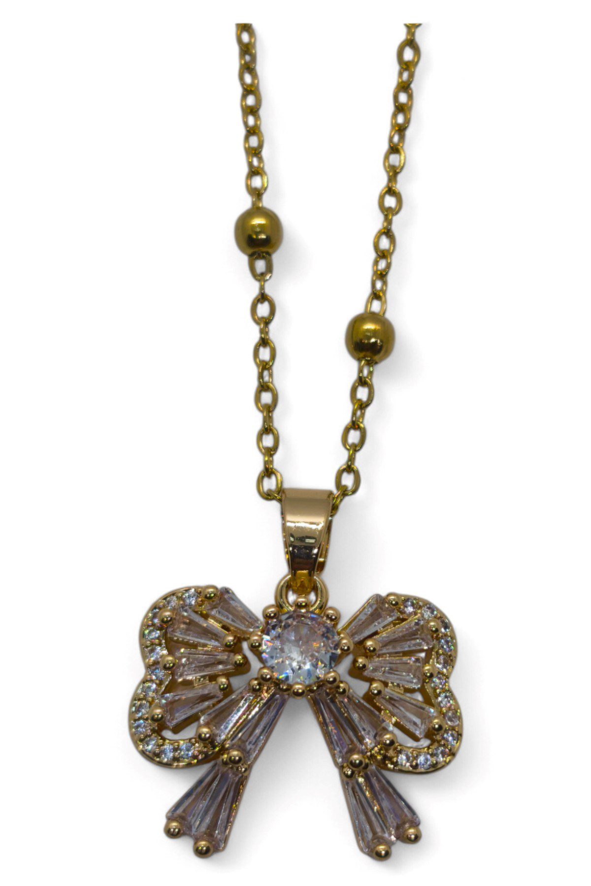 Toptan Altın Renk Baget Fiyonk Model Top Zincir Çelik Kolye – 3692