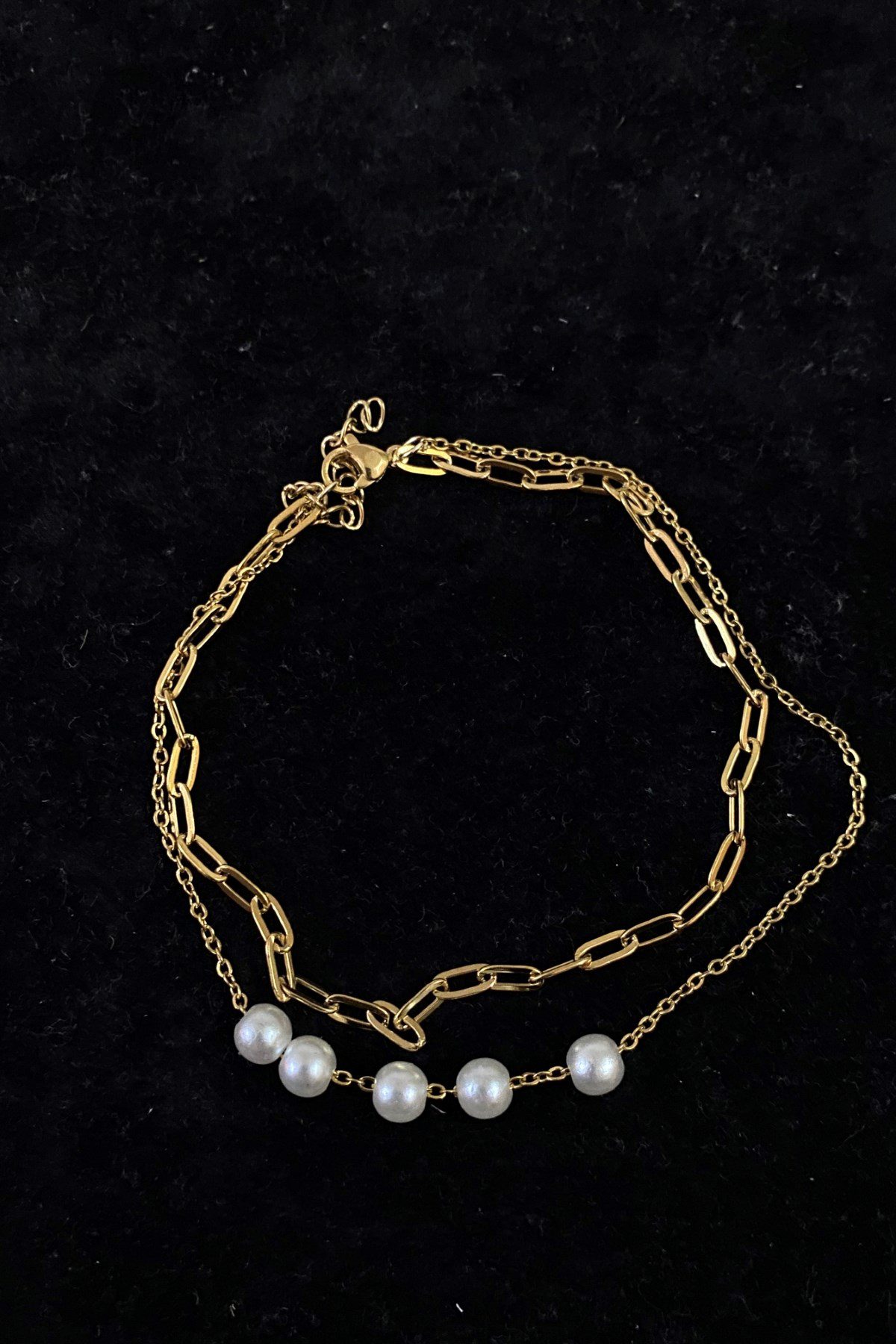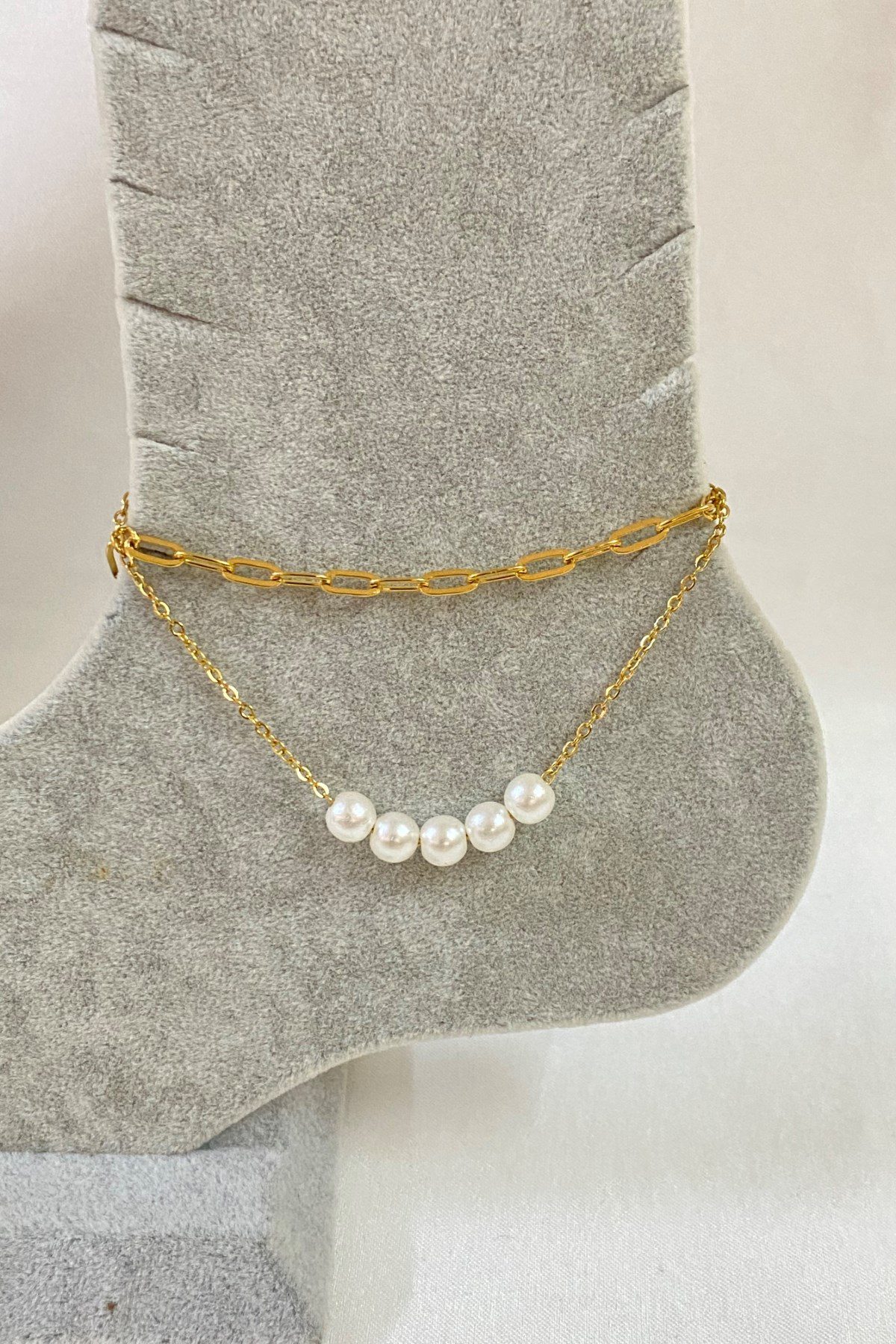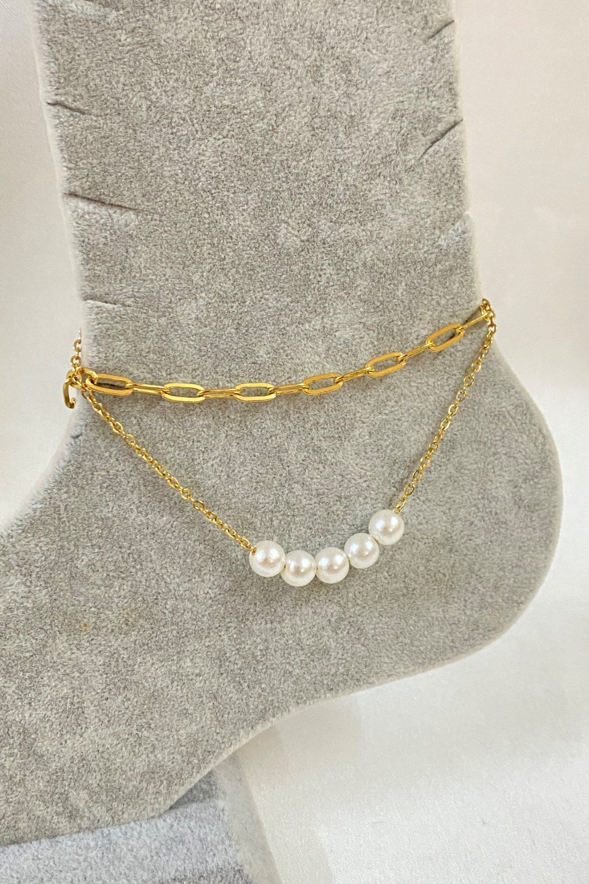 Toptan Altın Renk Beş İncili Model Ezme Ve Sf Zincir Çelik Halhal – 3242