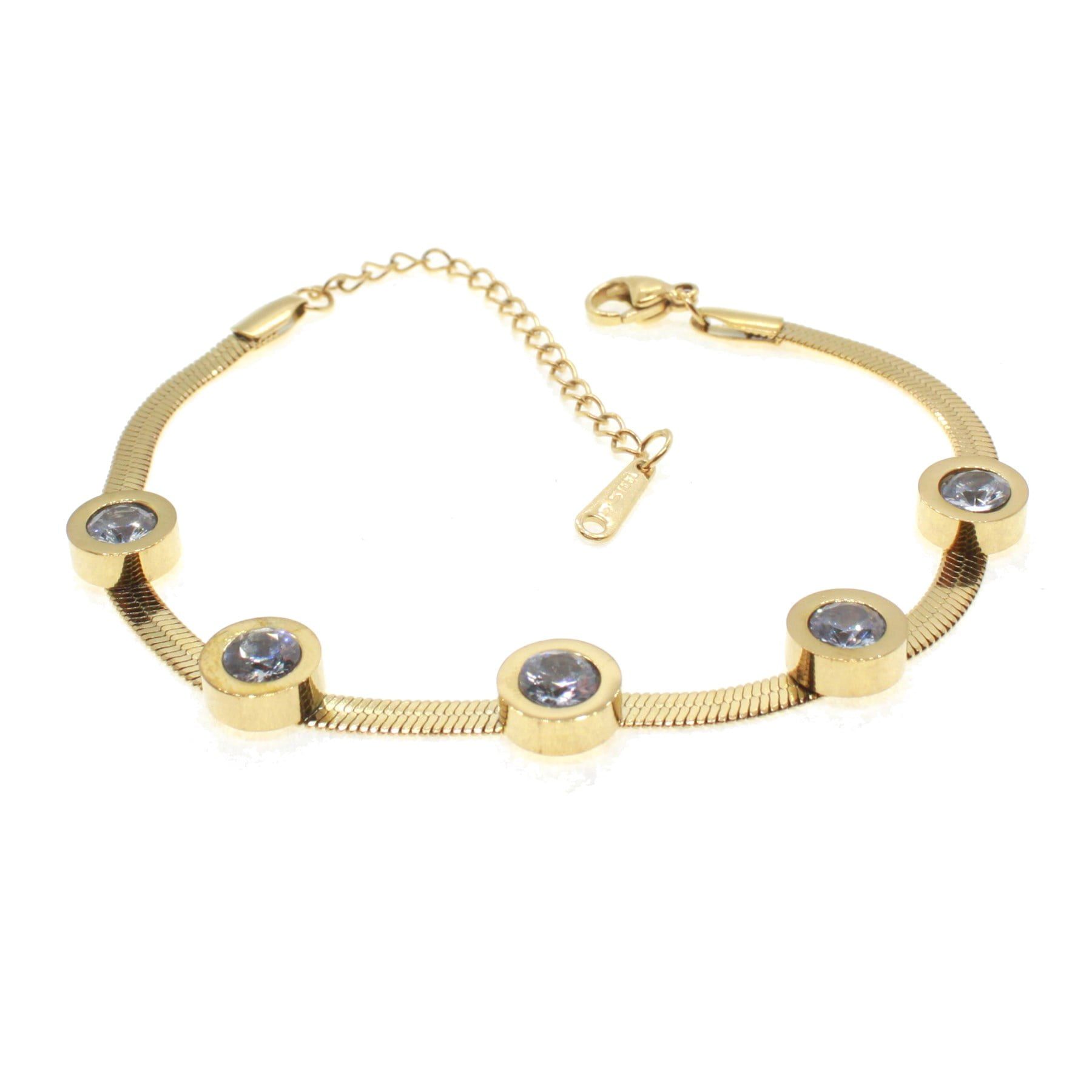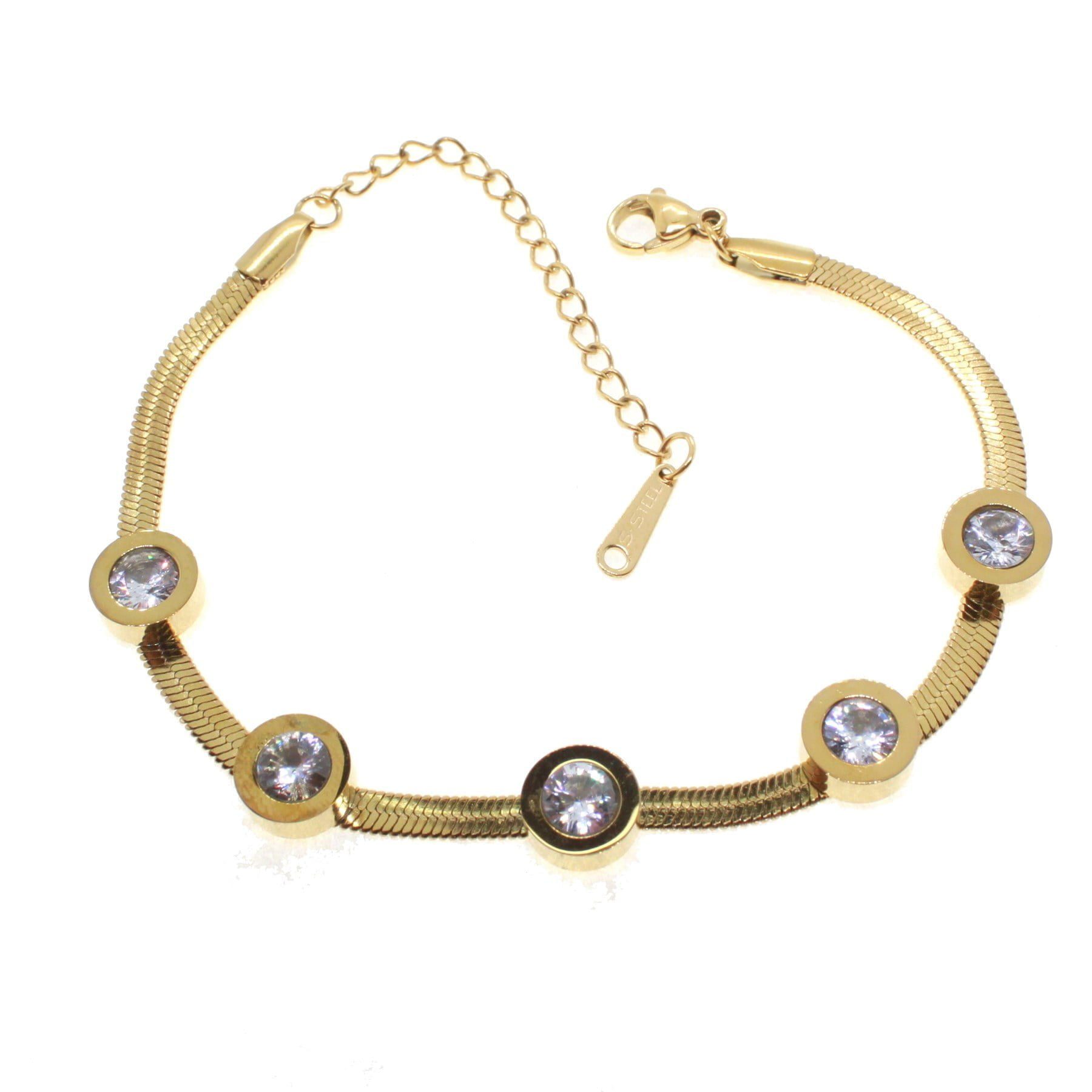 Toptan Altın Renk Beş Taşlı İtalyan Model Çelik Bileklik – 1643