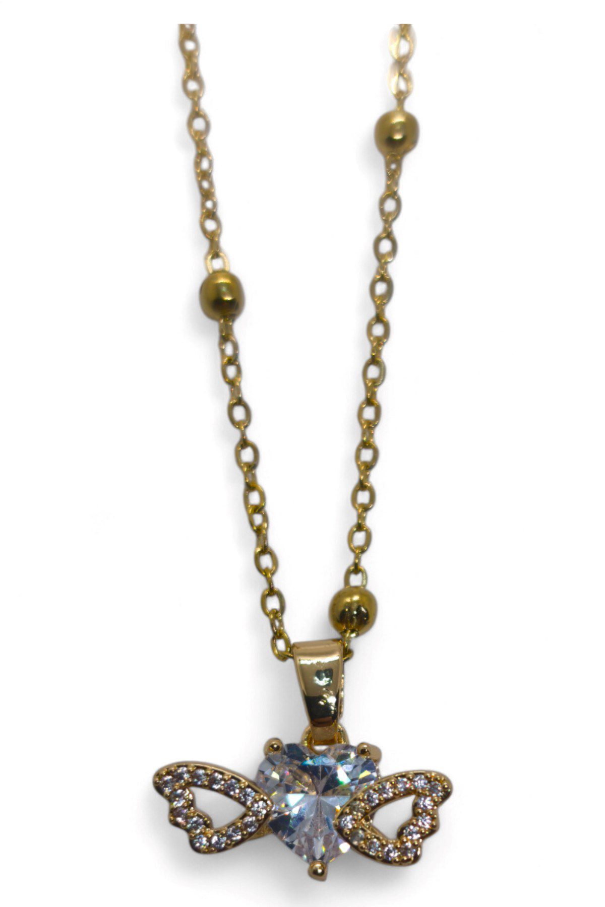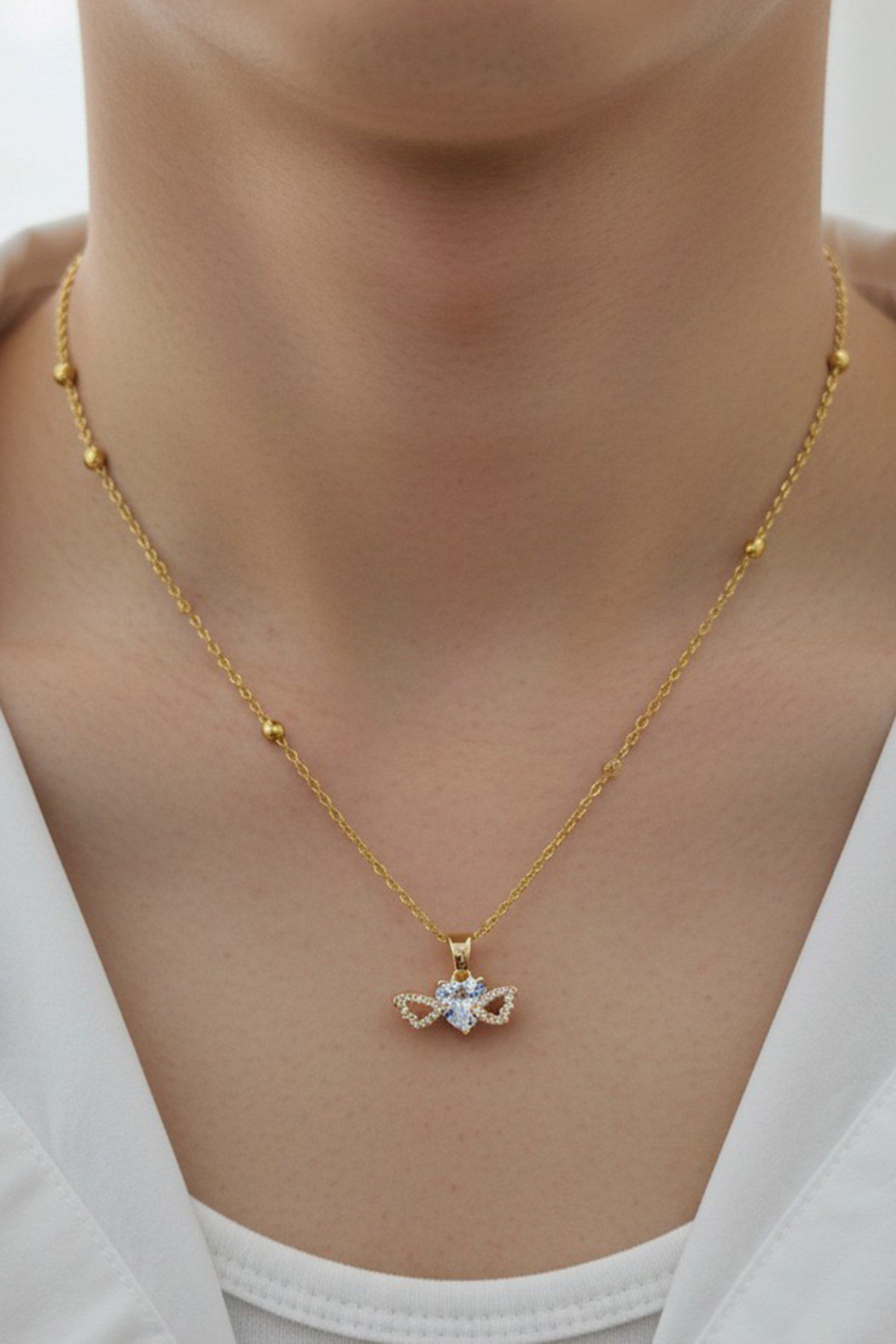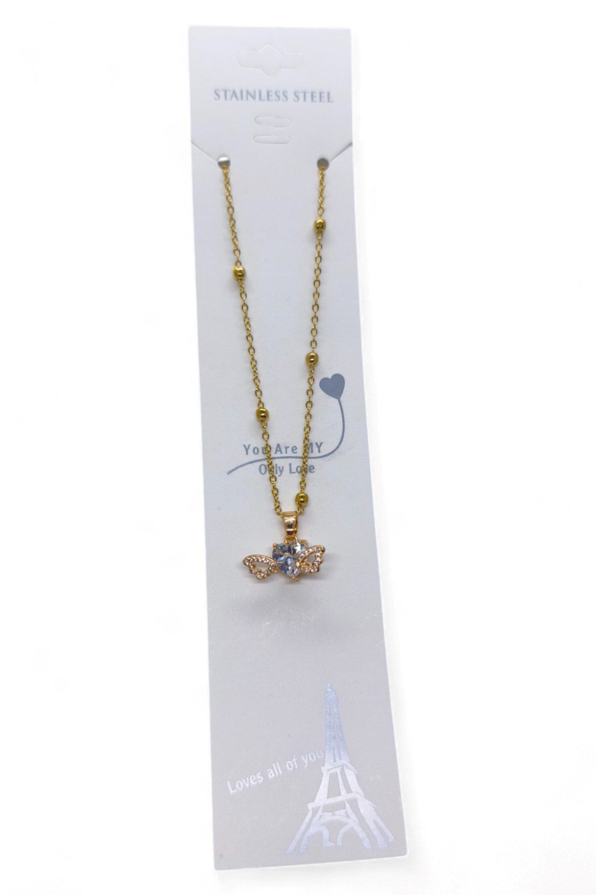 Toptan Altın Renk Beyaz Kalp Taş Kalp Model Top Zincir Çelik Kolye- 3713