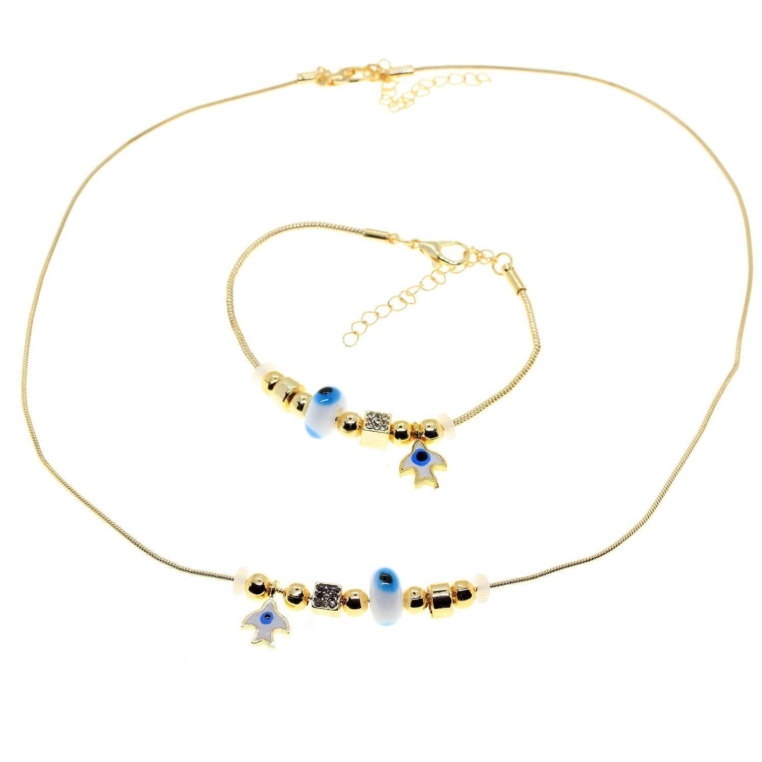 Toptan Altın Renk Beyaz Kuş Kolye Ve Bileklik Pandora Kombin Zirkon Set Takım – 3007