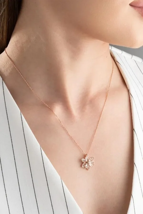 Toptan Altın Renk Beyaz Lotus Çiçeği Kolye Paslanmaz Çelik Kolye – 3399