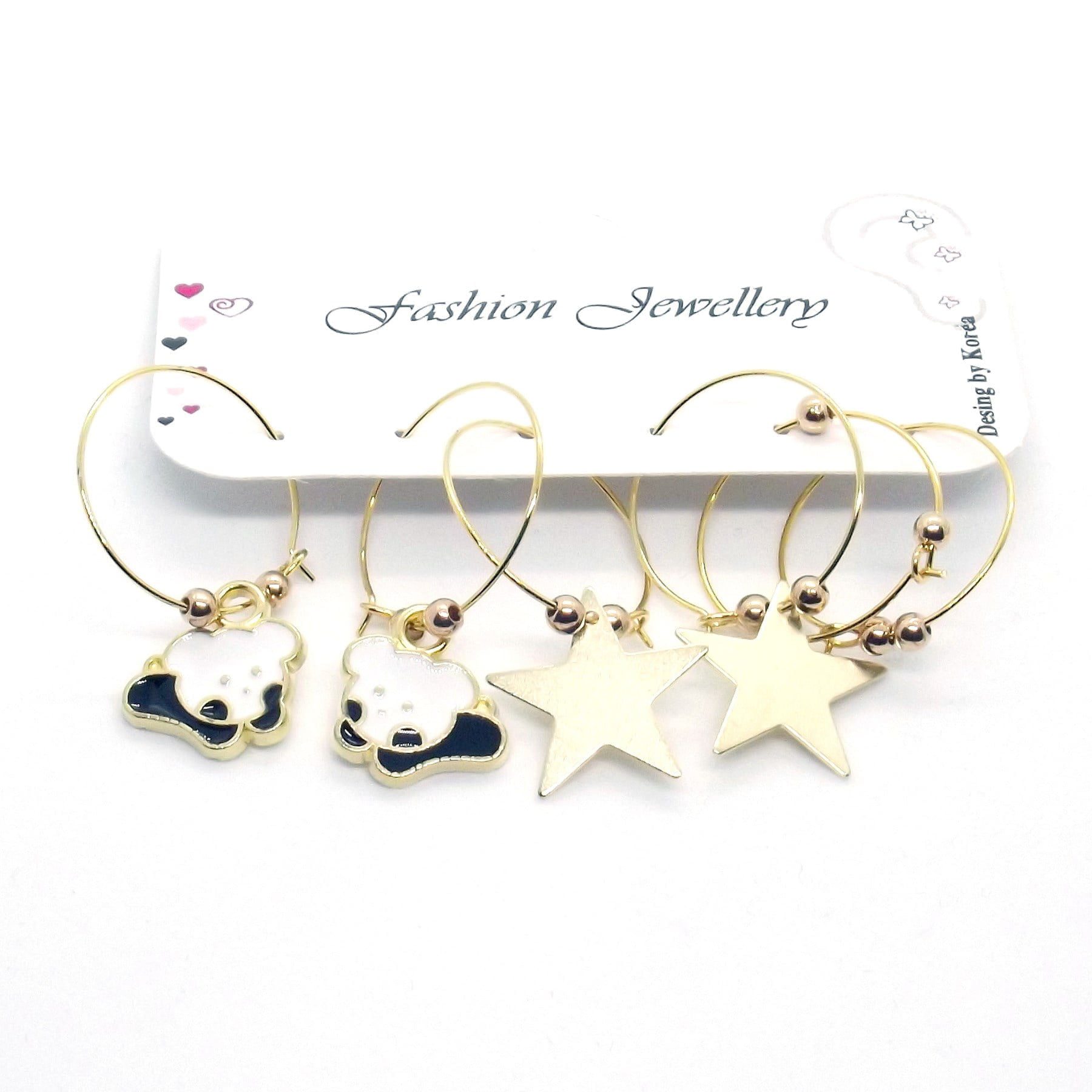 Toptan Altın Renk Beyaz Mineli Panda Figurlu Kombin Küpe 652