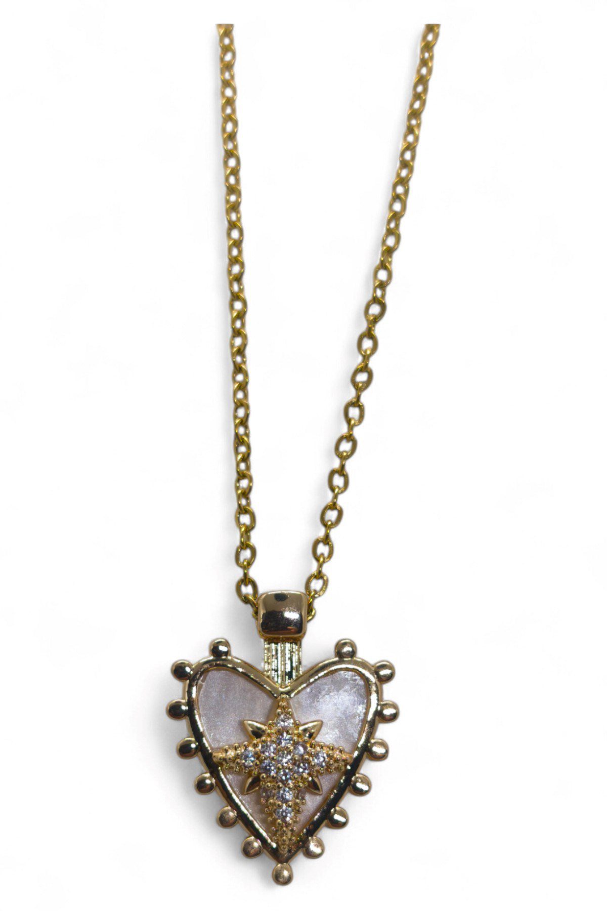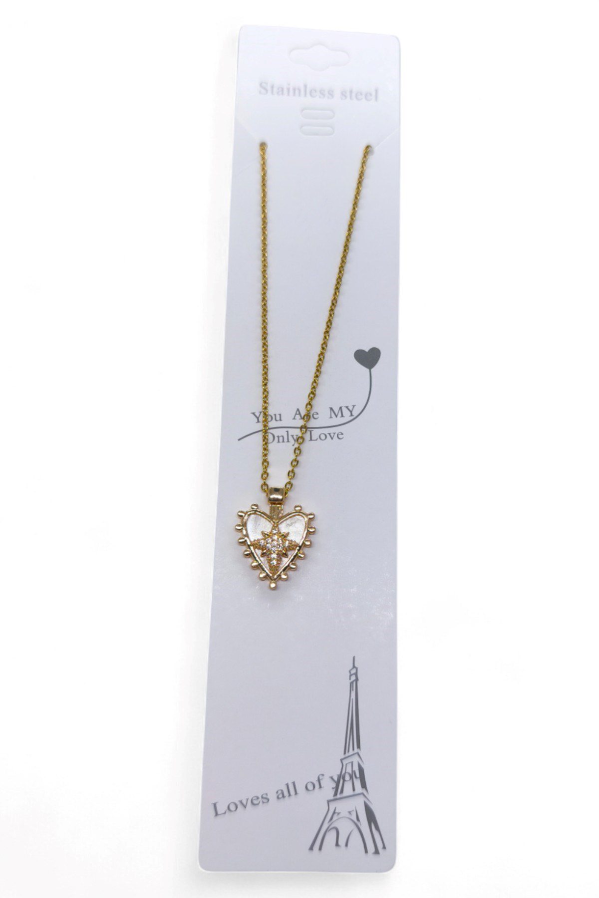 Toptan Altın Renk Beyaz Sedef Kalp Kutup Yıldızı Model Sf Zincir Çelik Kolye- 3715