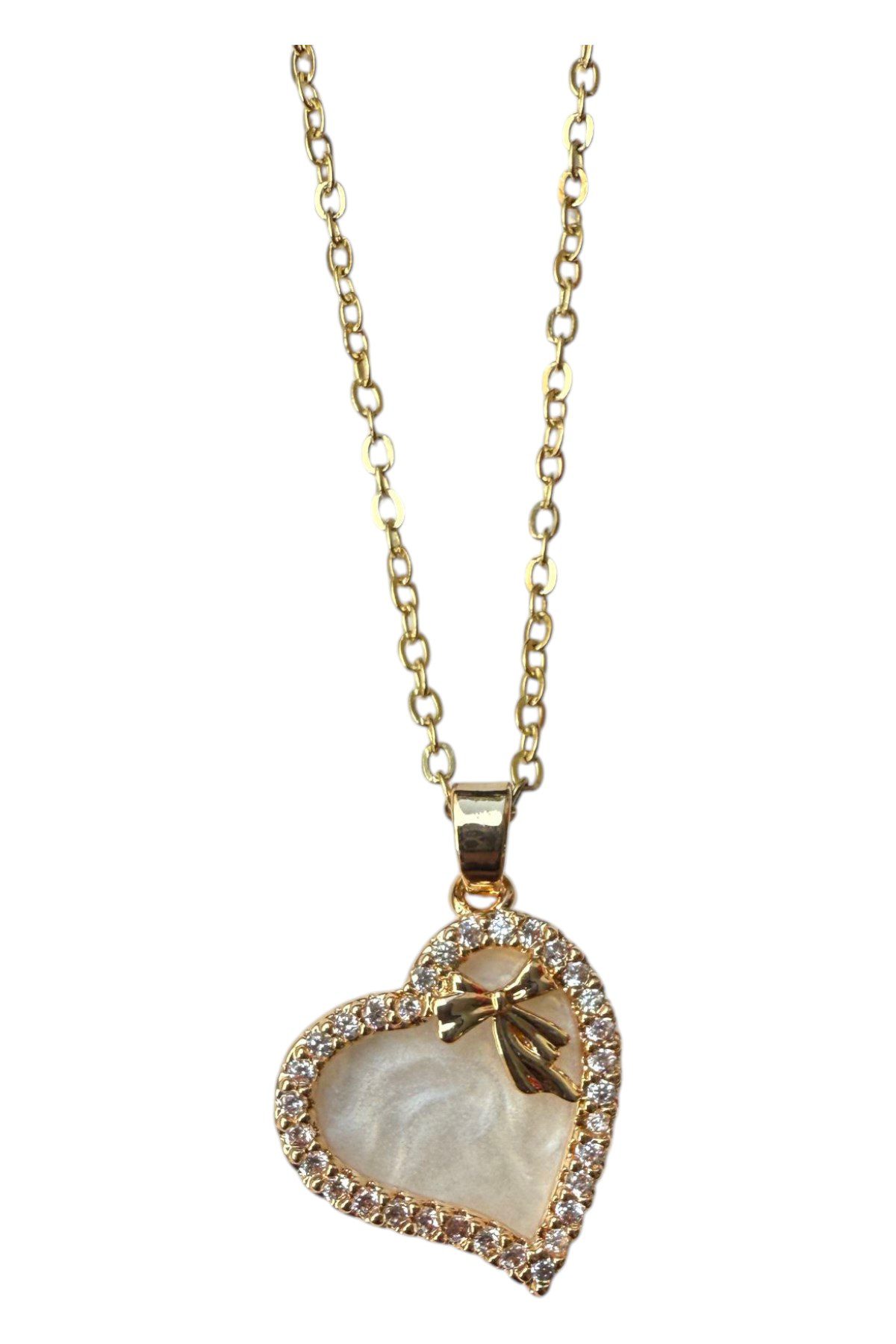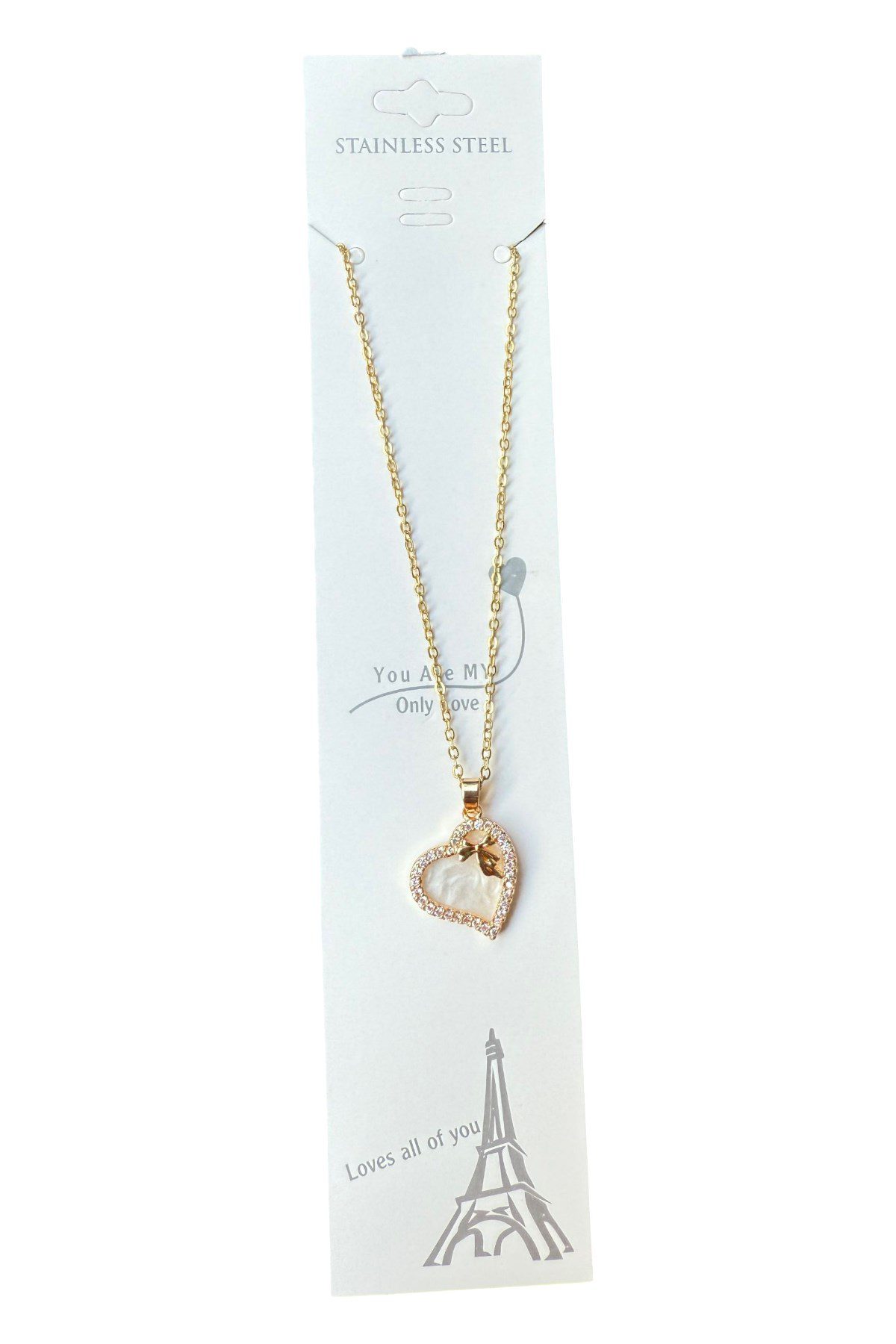 Toptan Altın Renk Beyaz Sedef Kalp Sf Zincir Çelik Kolye – 3648