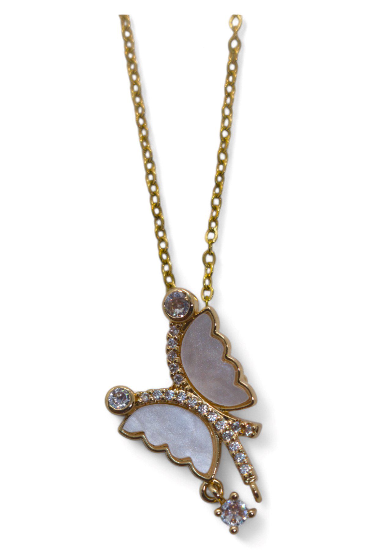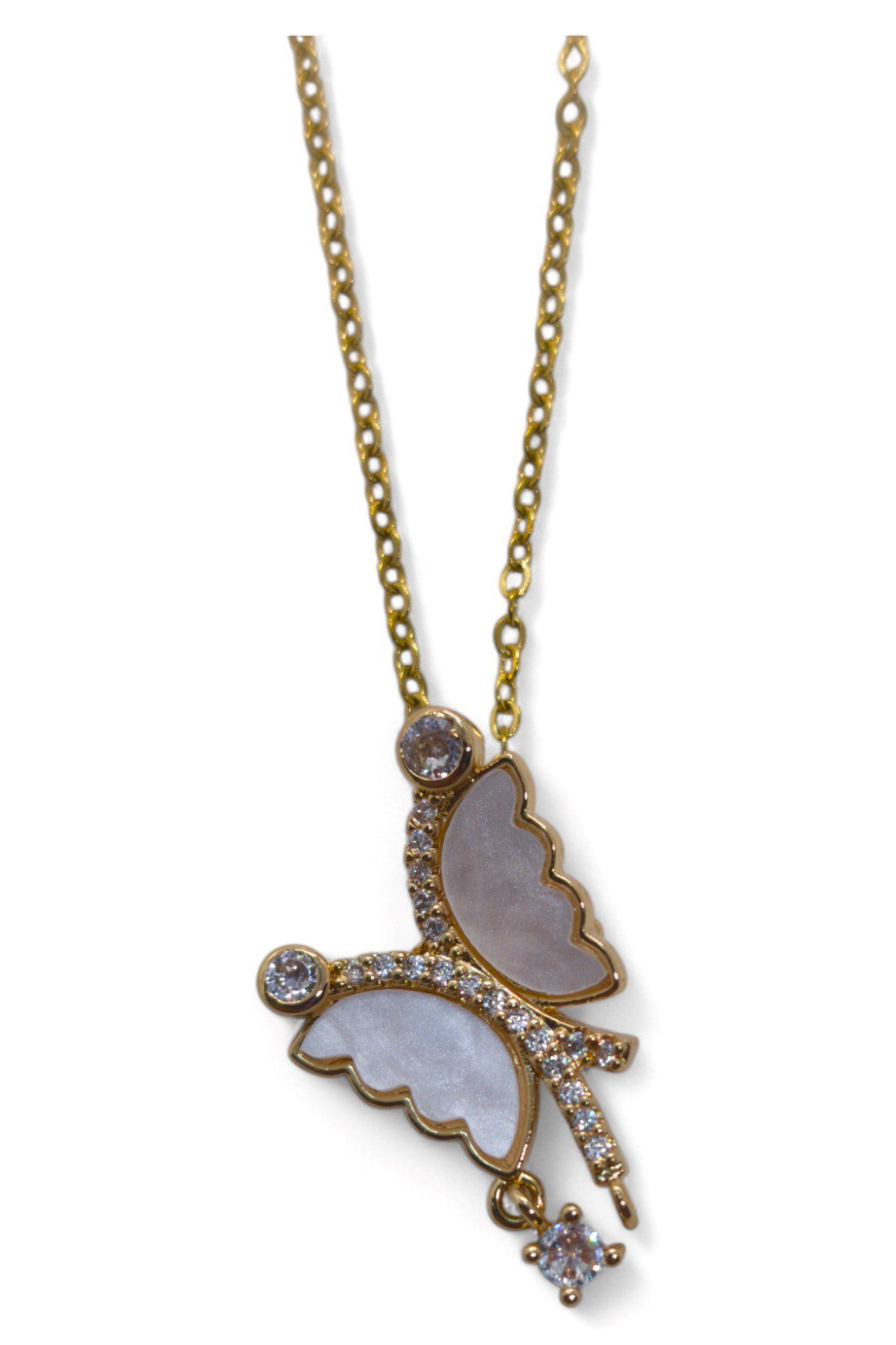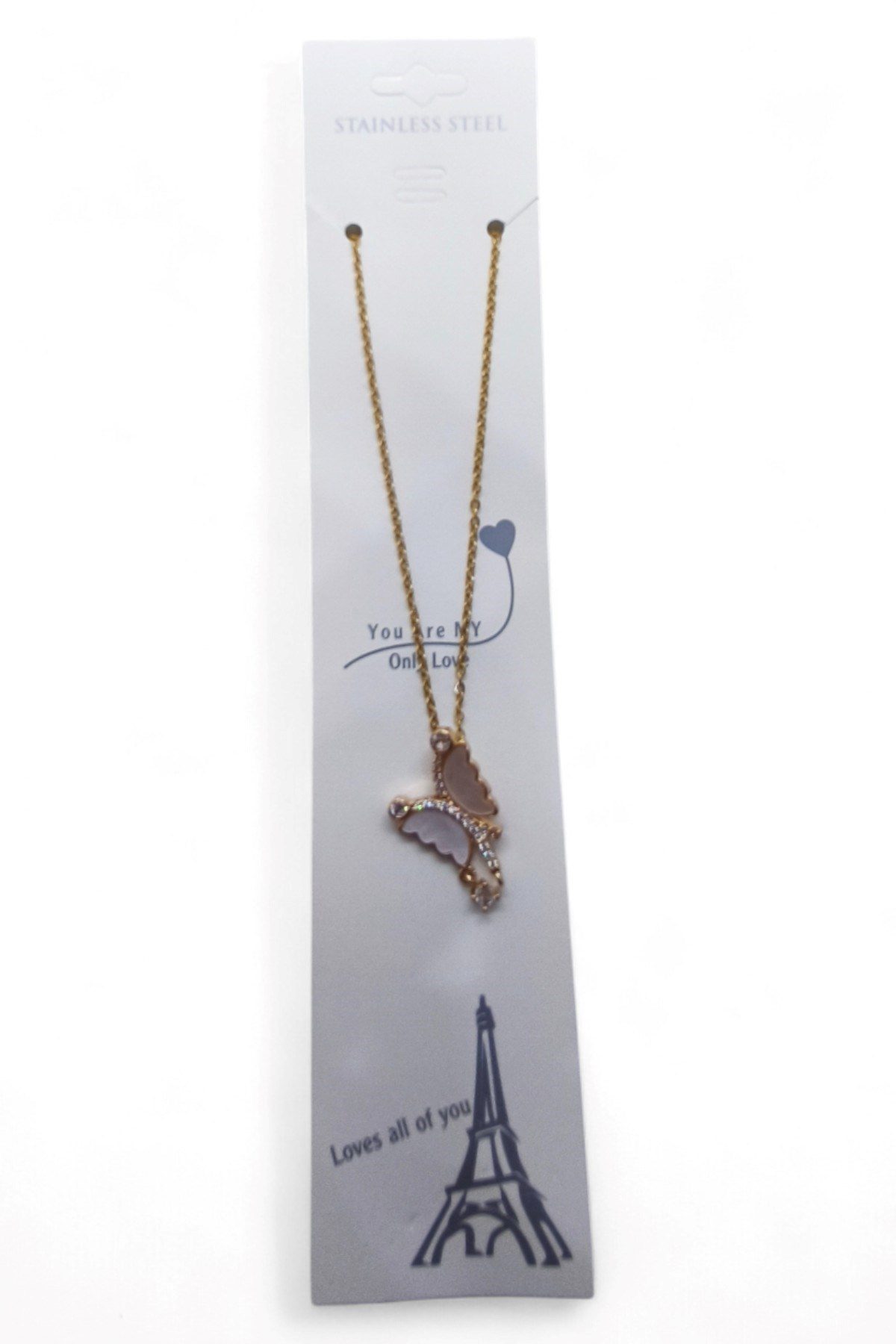 Toptan Altın Renk Beyaz Sedef Yusufcuk Model Sf Zincir Çelik Kolye- 3709