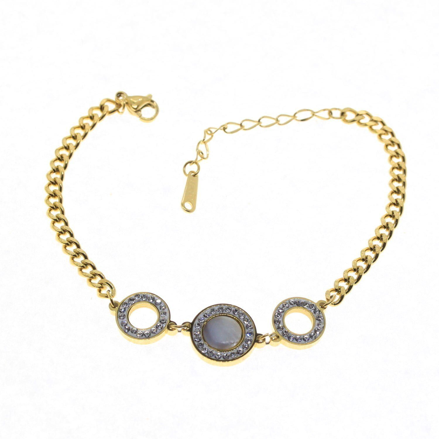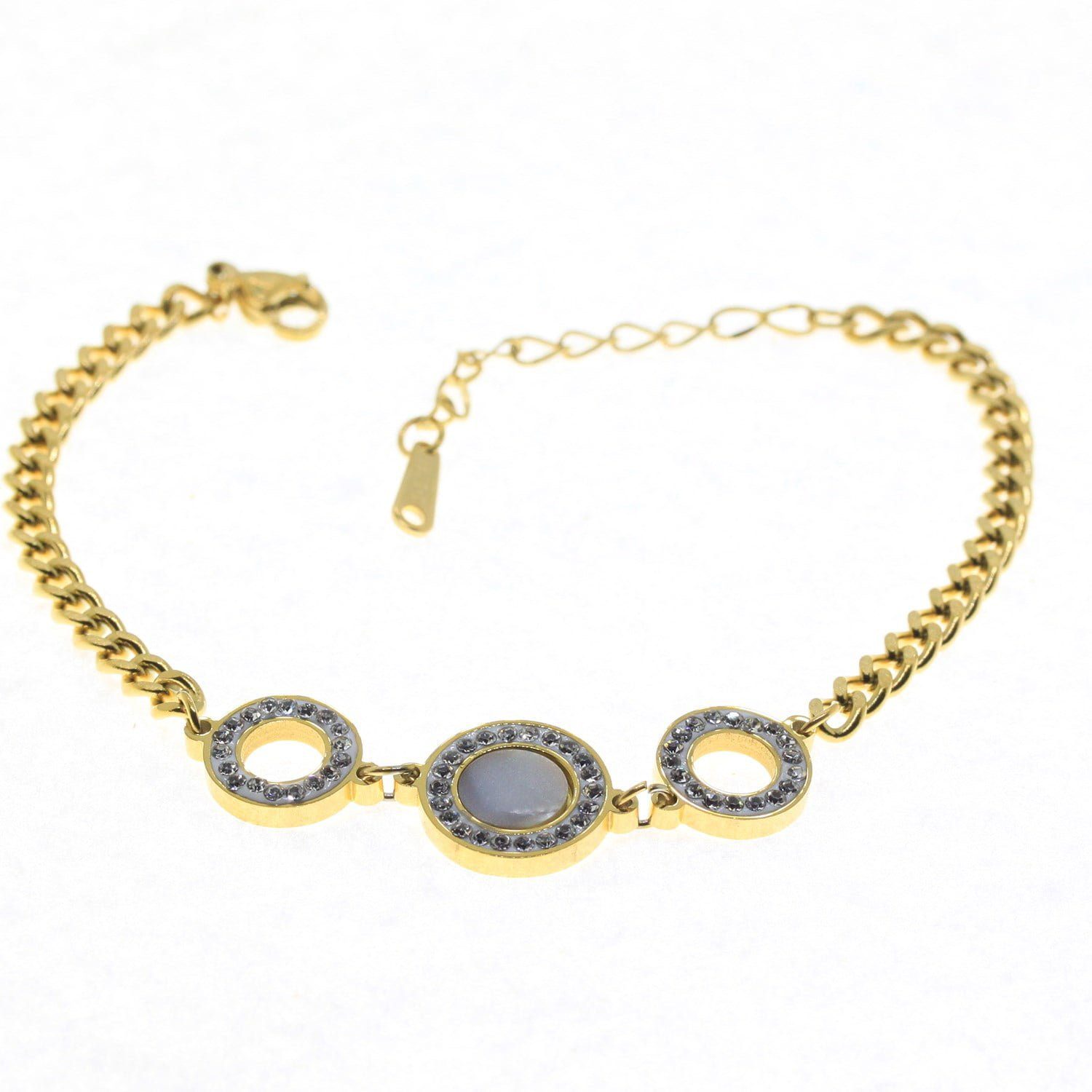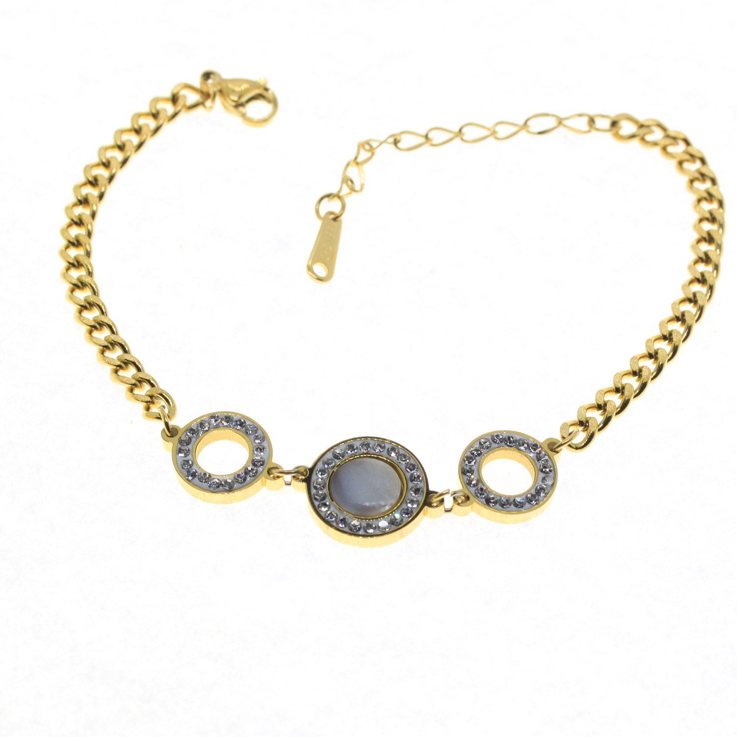 Toptan Altın Renk Beyaz Sedef Yuvarlak Çelik Bileklik – 2903