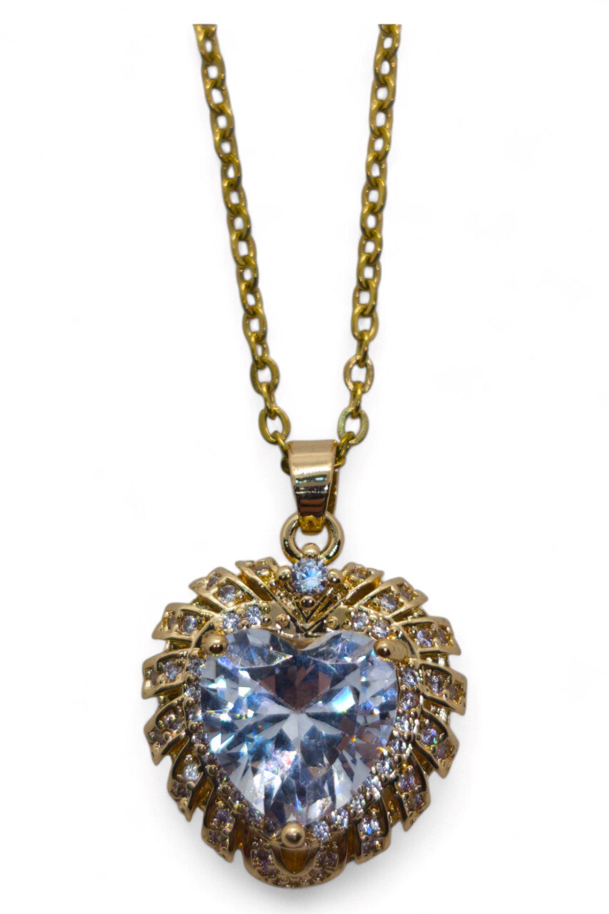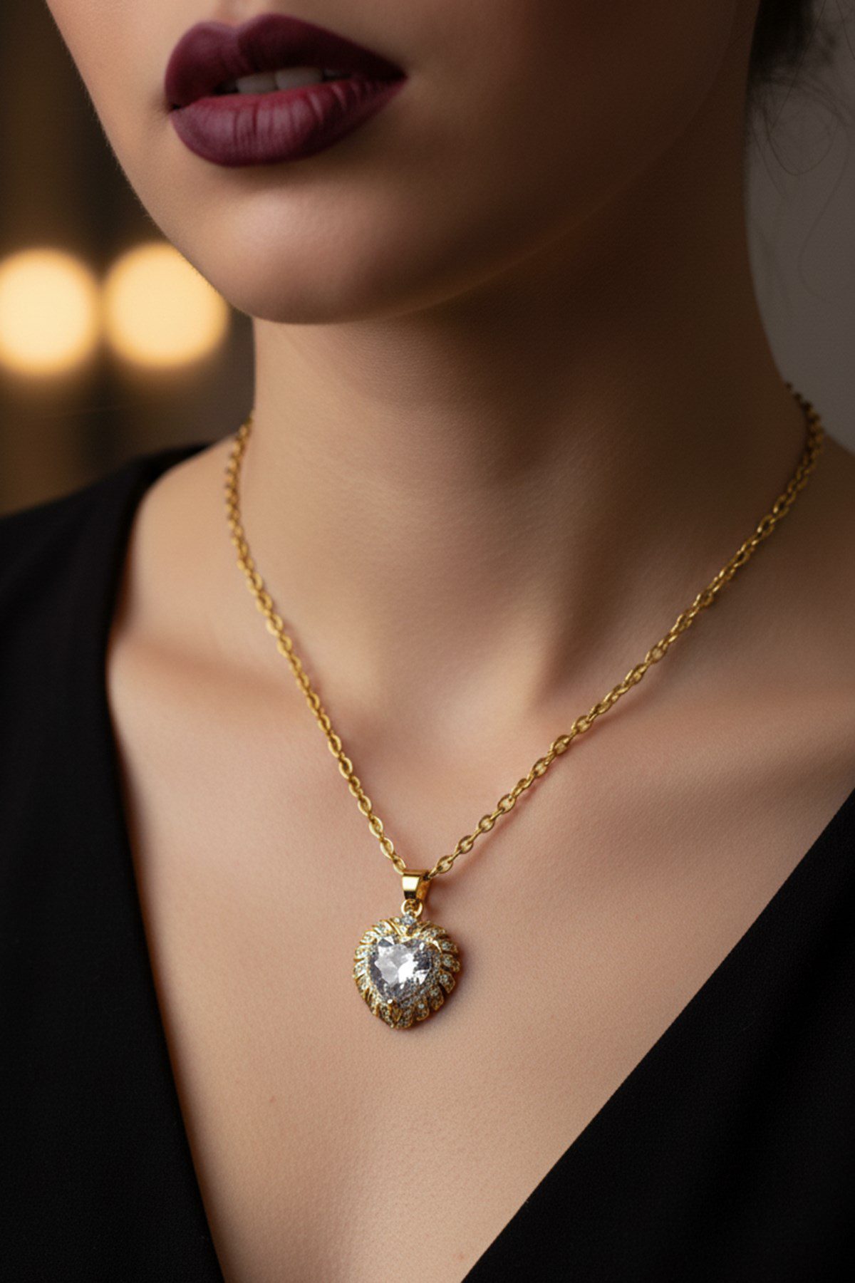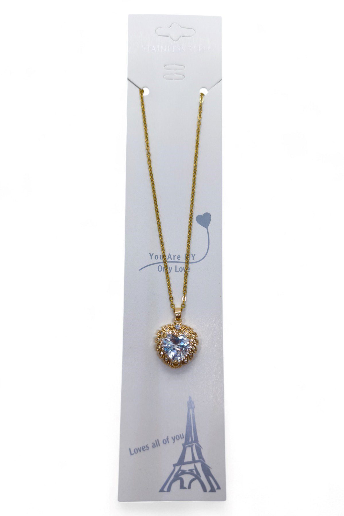 Toptan Altın Renk Beyaz Taş Kalp Model Sf Zincir Çelik Kolye – 3721