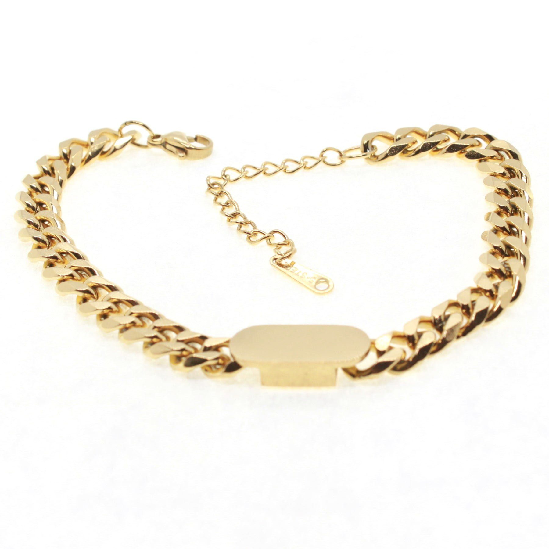 Toptan Altın Renk Cadena Tek Plaka Unisex Model Çelik Bileklik – 1617