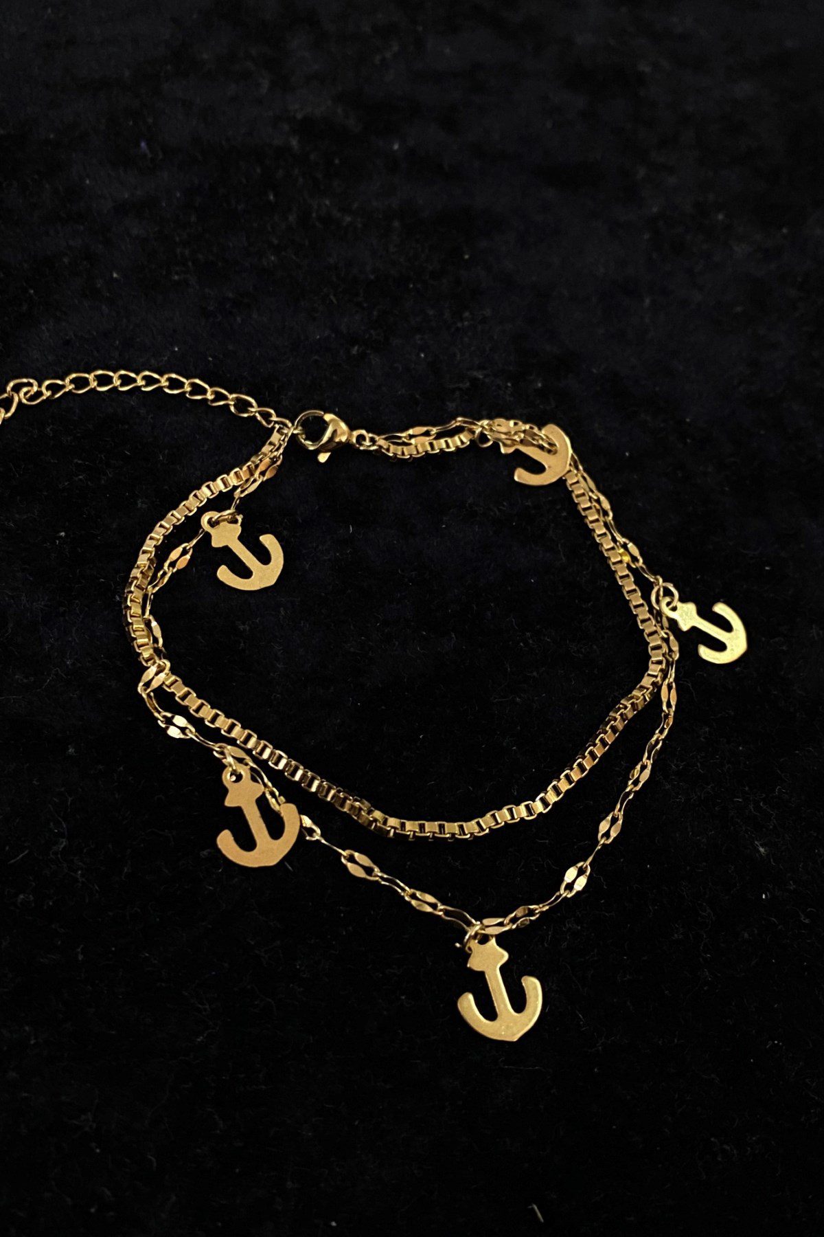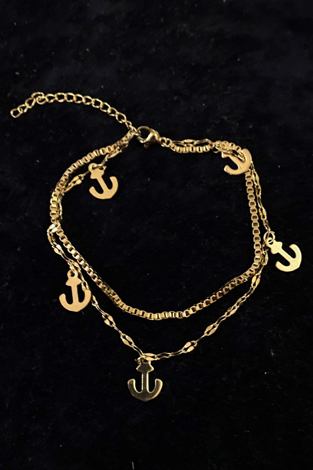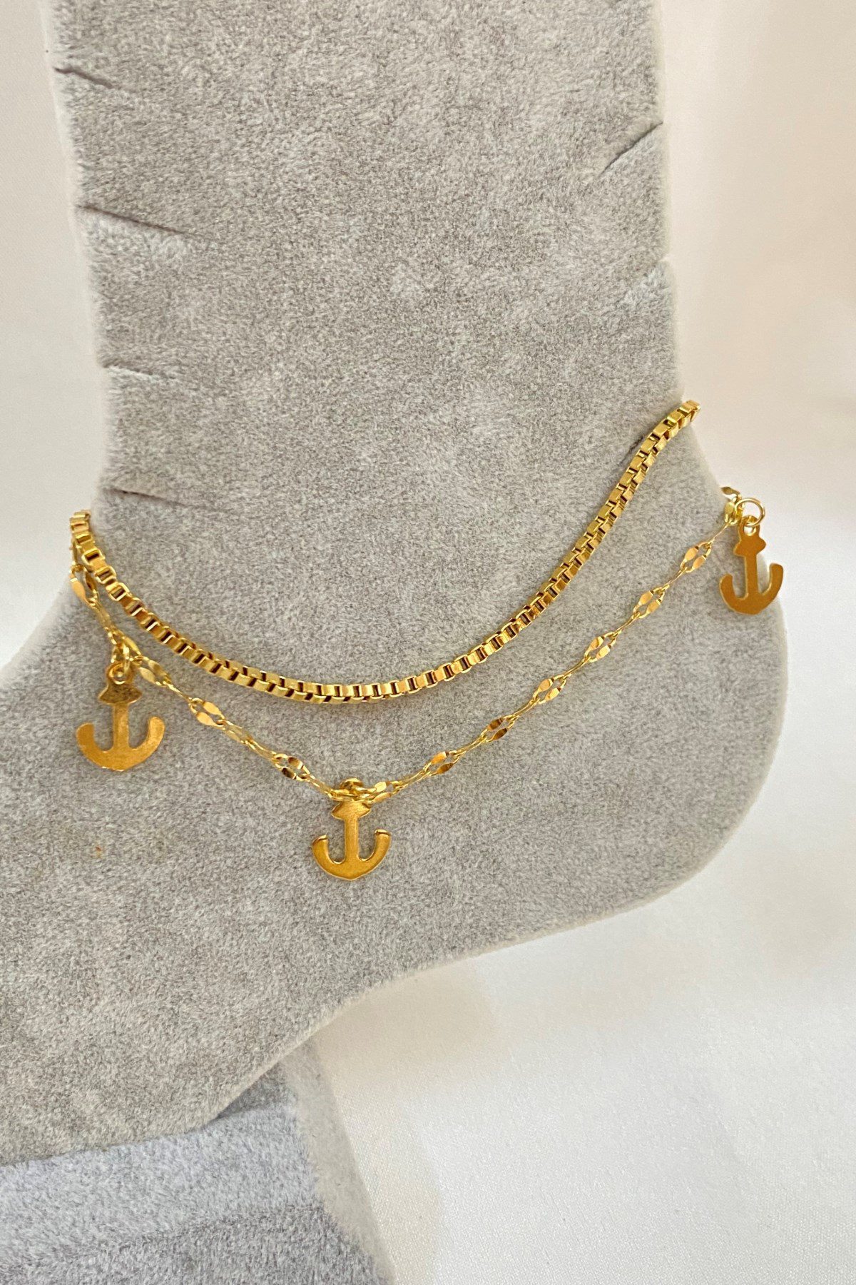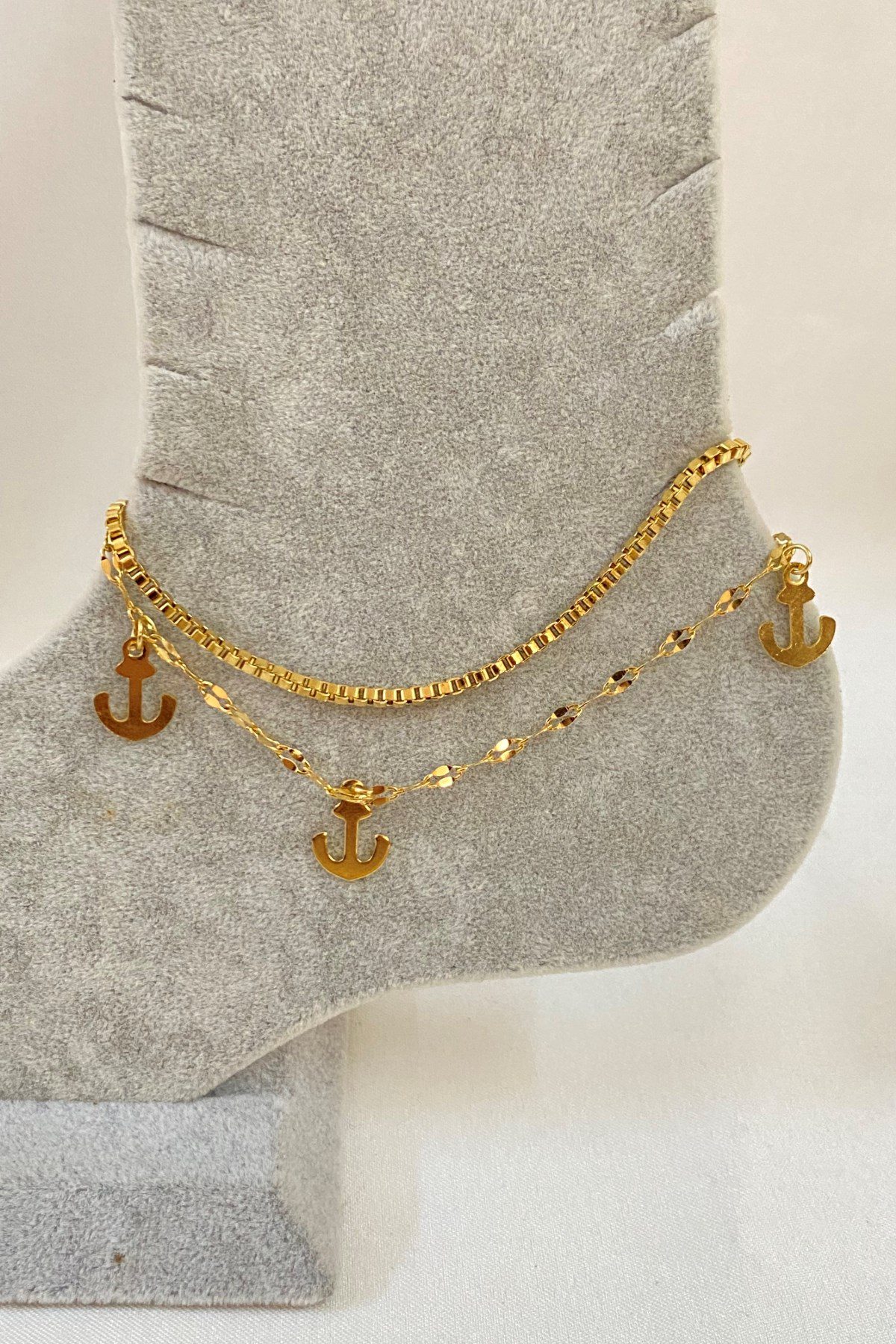 Toptan Altın Renk Çapa Model Asansör Ve Singapur Zincir Çelik Halhal – 3231