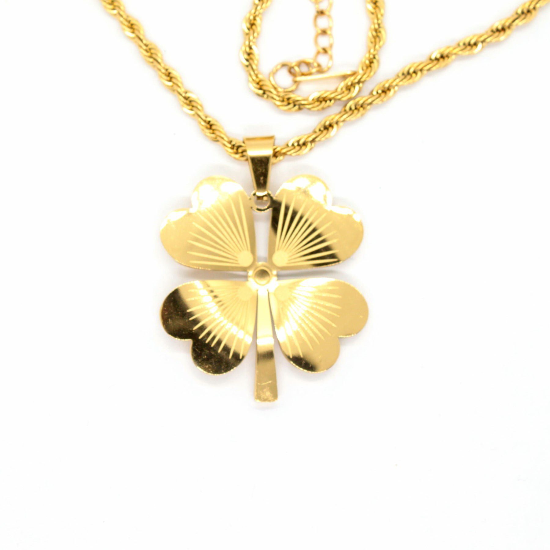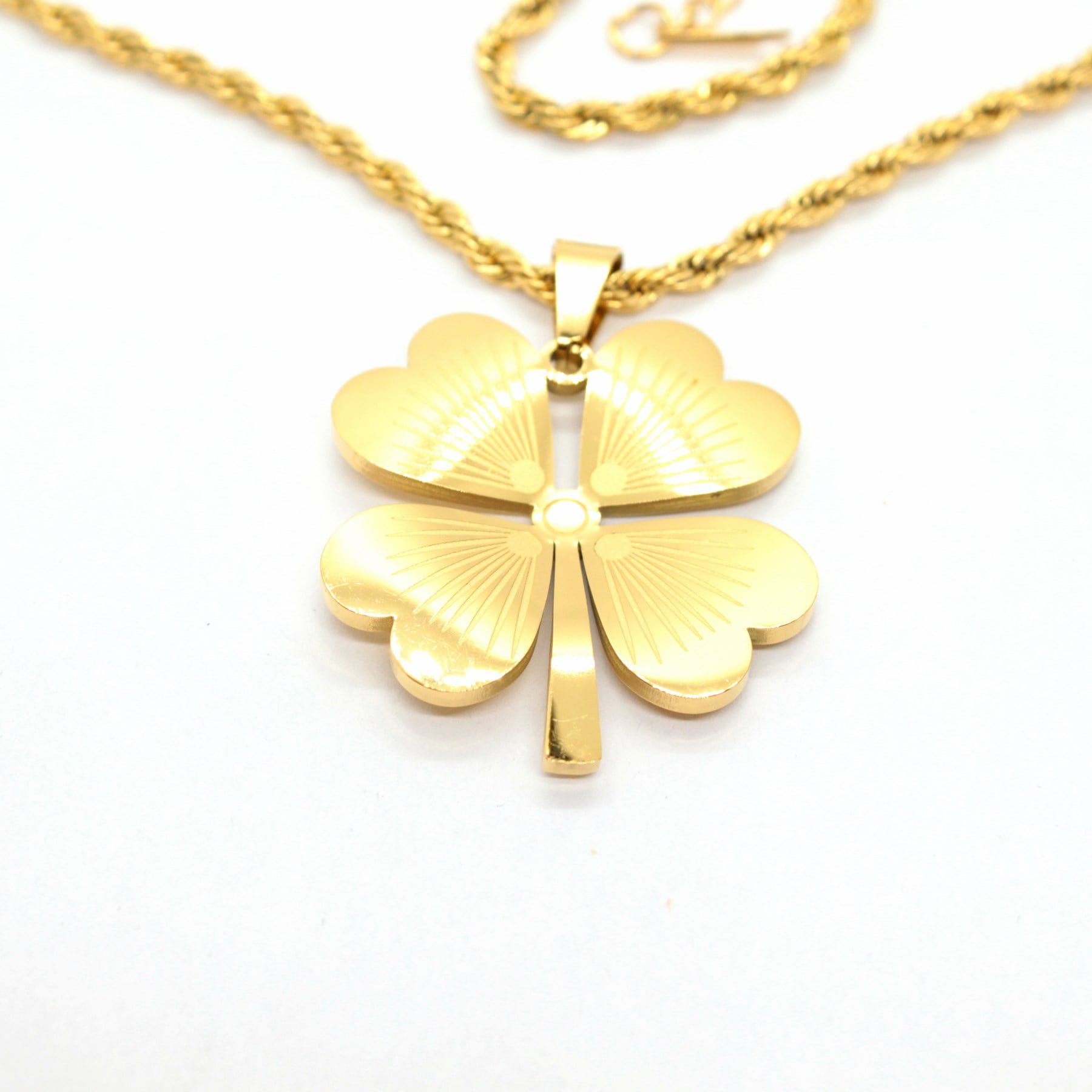 Toptan Altın Renk Çelik Burgu Çukur Yonca Kolye – 1439