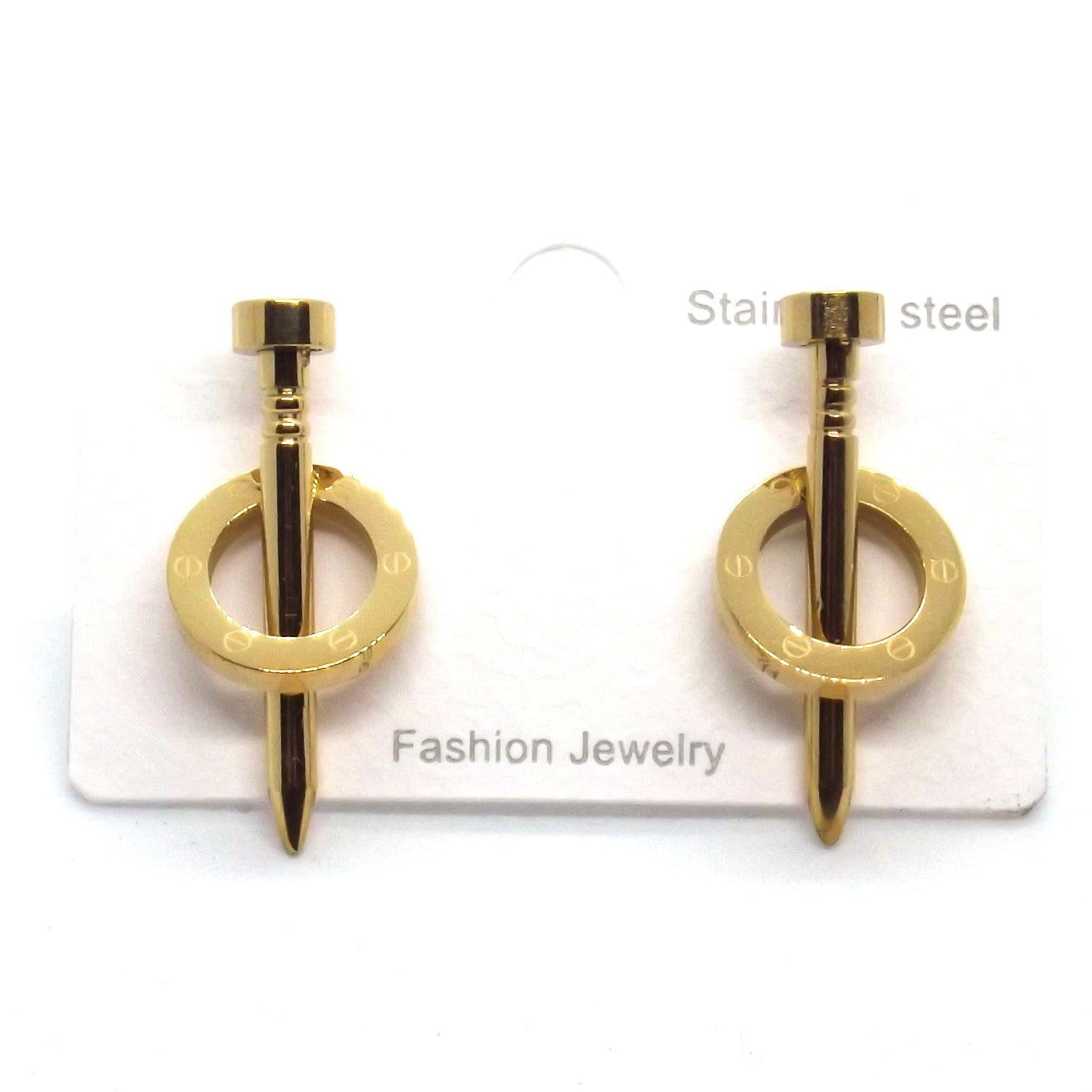 Toptan Altın Renk Çelik Çivi Model Küpe 686