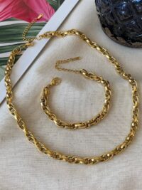 Toptan Altın Renk Çelik İç İçe Geçmeli Halat Unisex Kararmaz Kolye Ve Bileklik Çelik Set – 3212