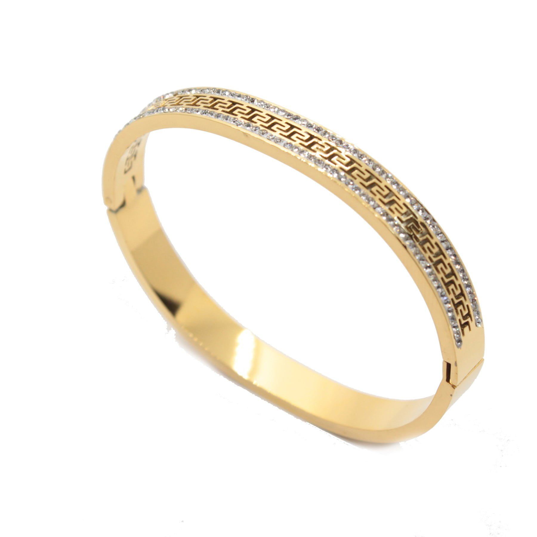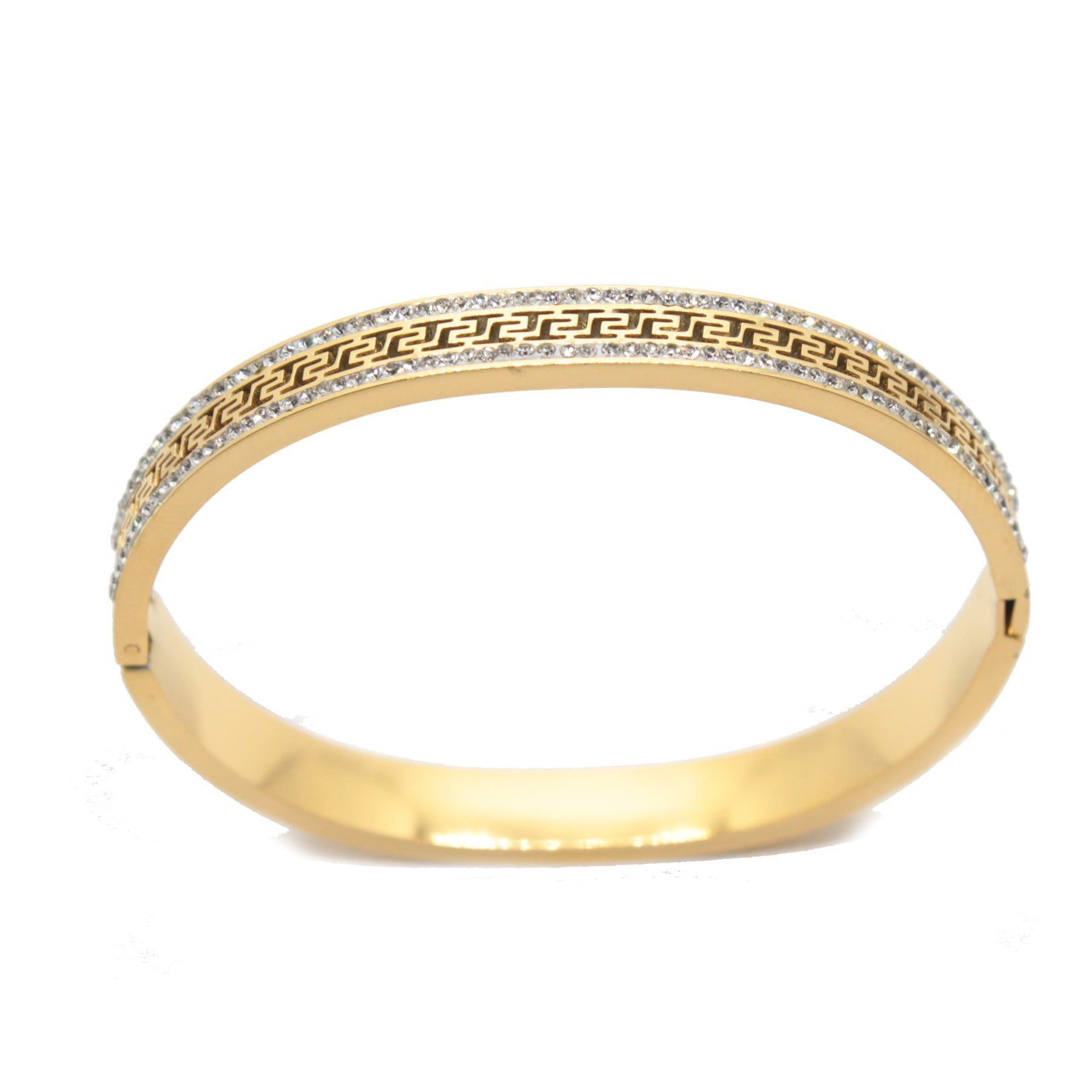 Toptan Altın Renk Çelik İnce Motif Zirkon Taşlı Kelepçe Bileklik – 1458