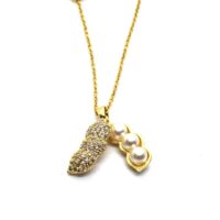 Toptan Altın Renk Çelik Saklı İnci Fıstık Model Çok Taşlı Kolye 694