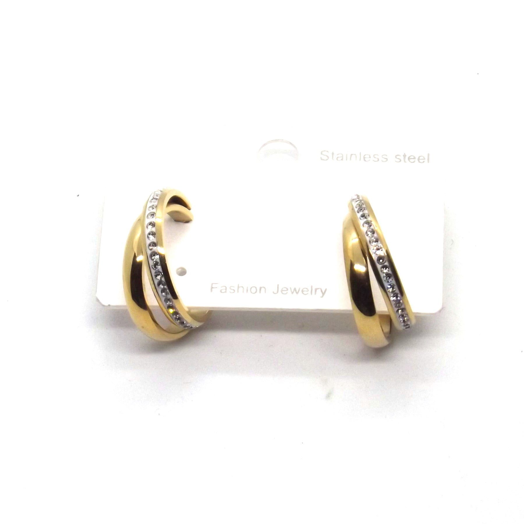 Toptan Altın Renk Çelik Yarım Halka Çok Taşlı Küpe 687