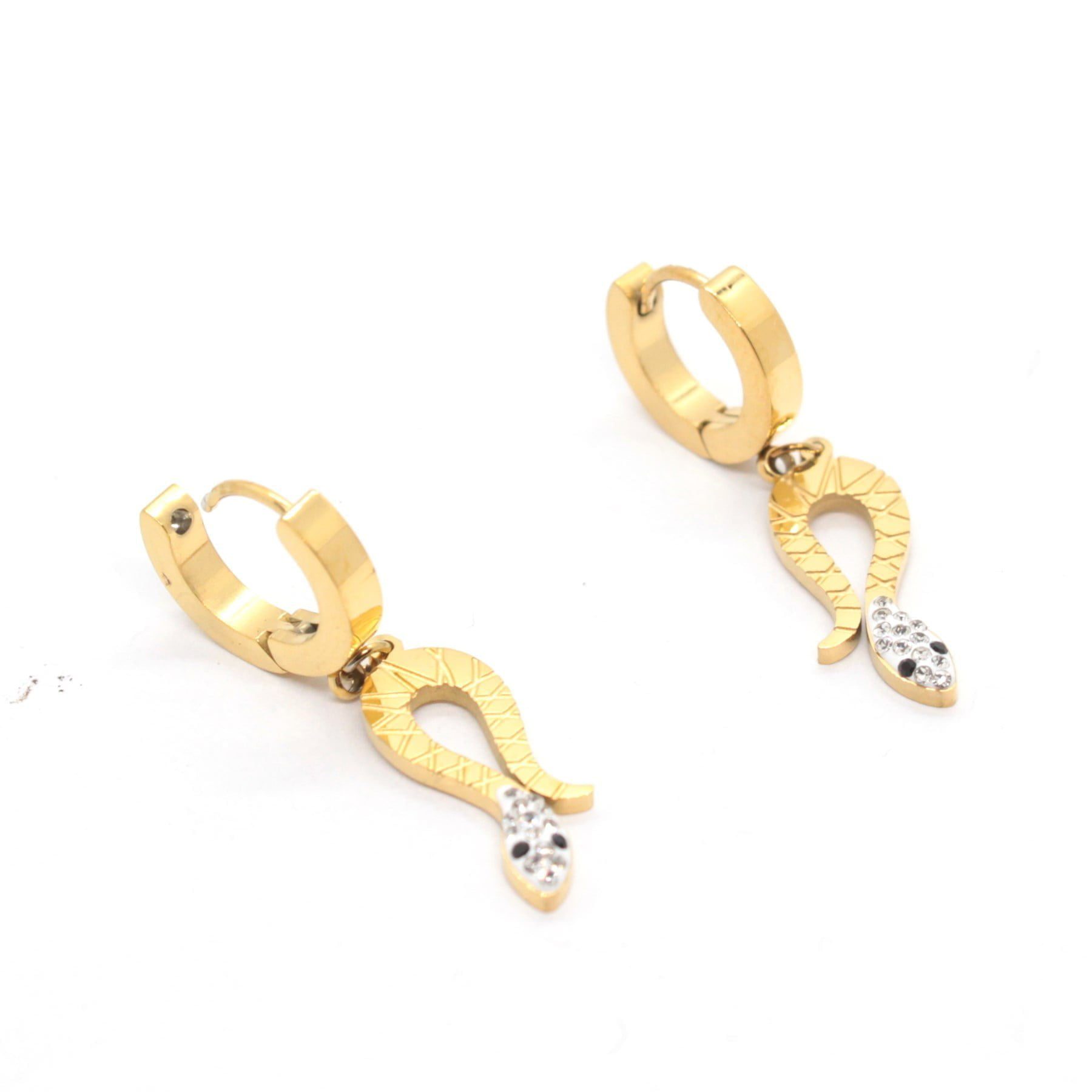 Toptan Altın Renk Çelik Yılan Küpe – 1484