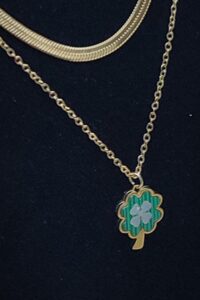 Toptan Altın Renk Çift Zincir İtalyan Sf Yeşil Yonca Çelik Kolye – 2547