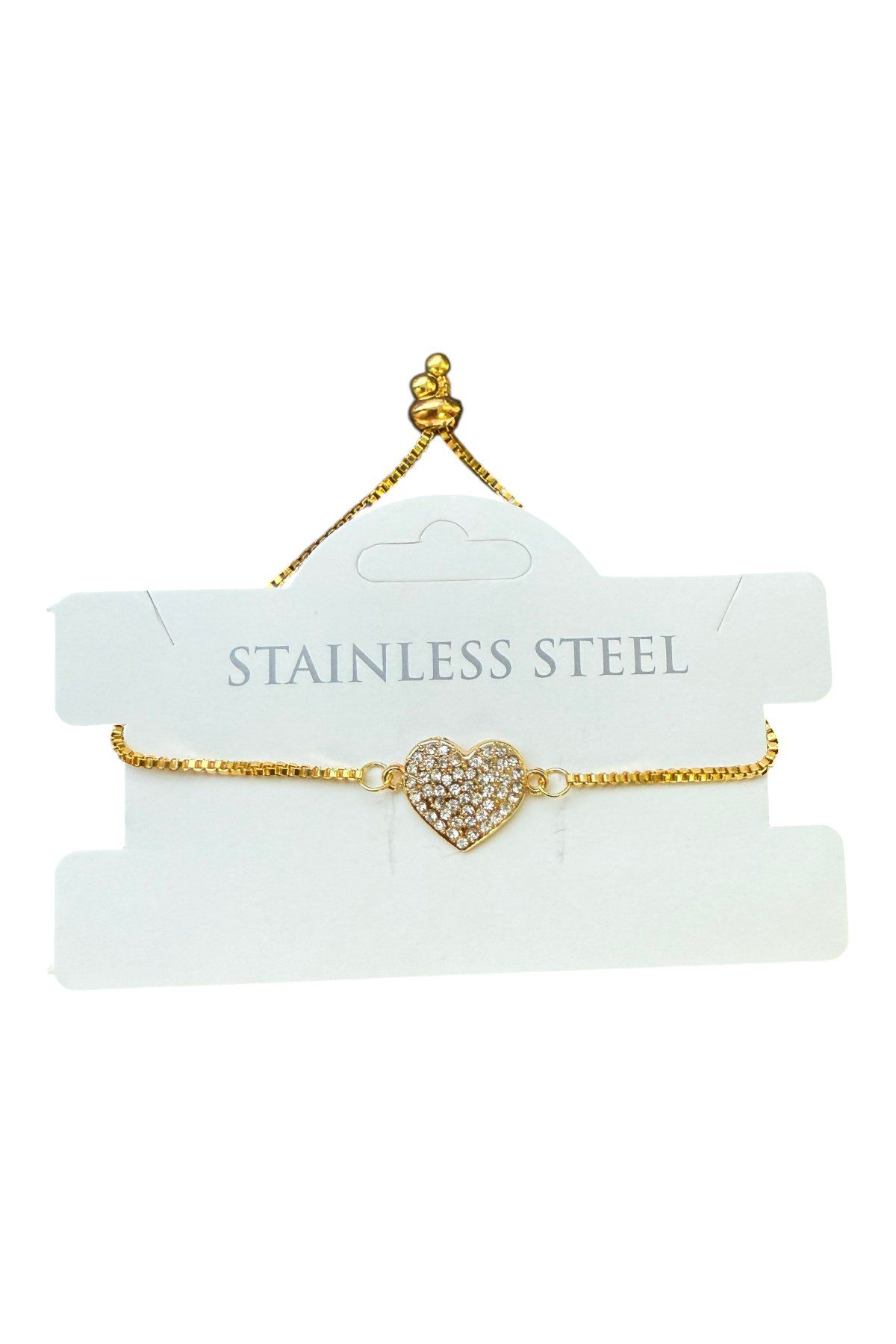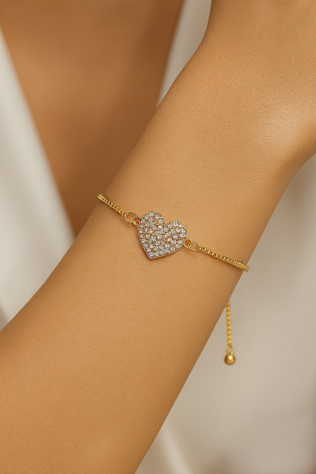 Toptan Altın Renk Çok Taşlı Kalp Asansör Çelik Bileklik – 3587