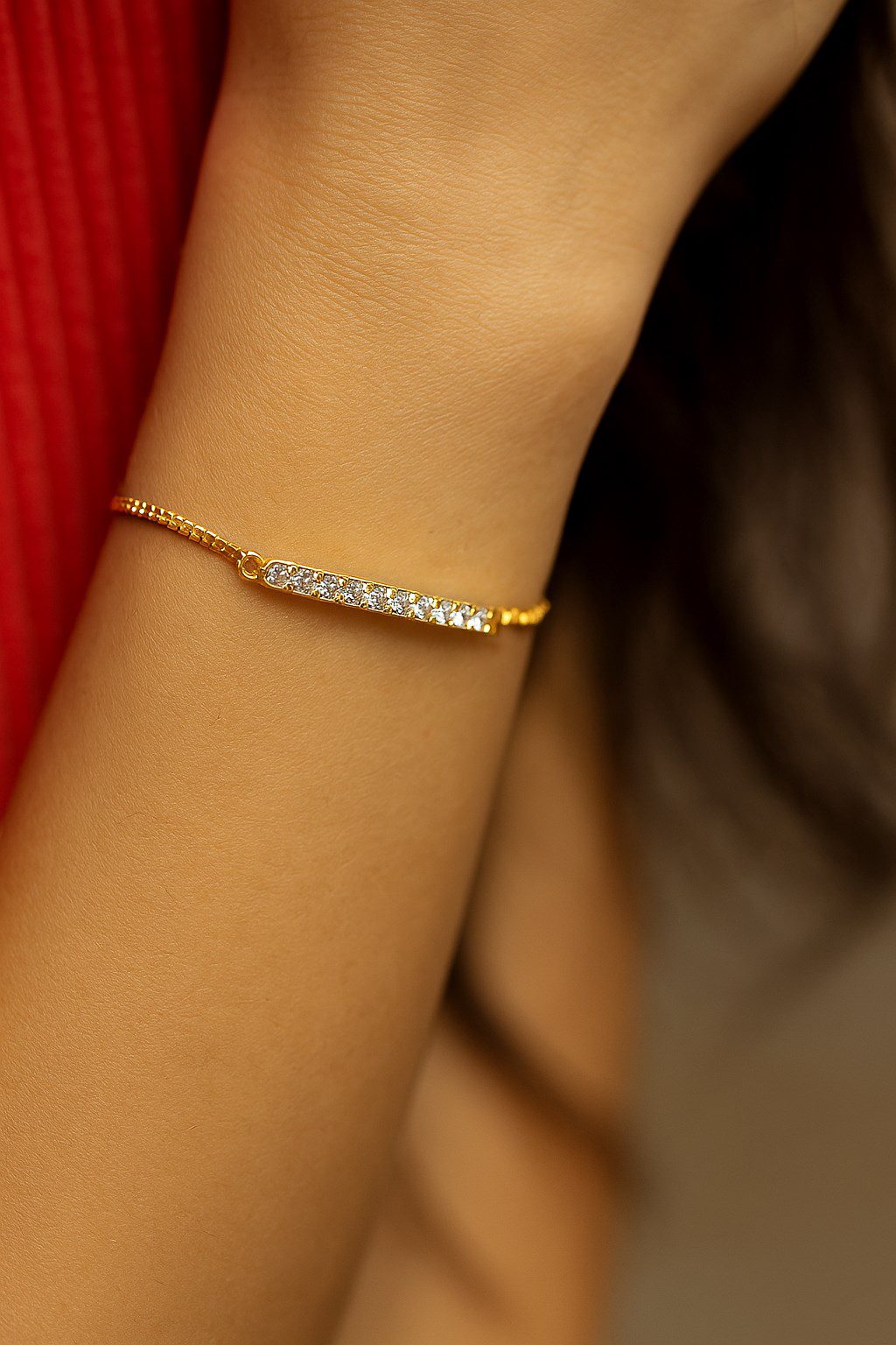 Toptan Altın Renk Çubuk Asansör Çelik Bileklik – 3588