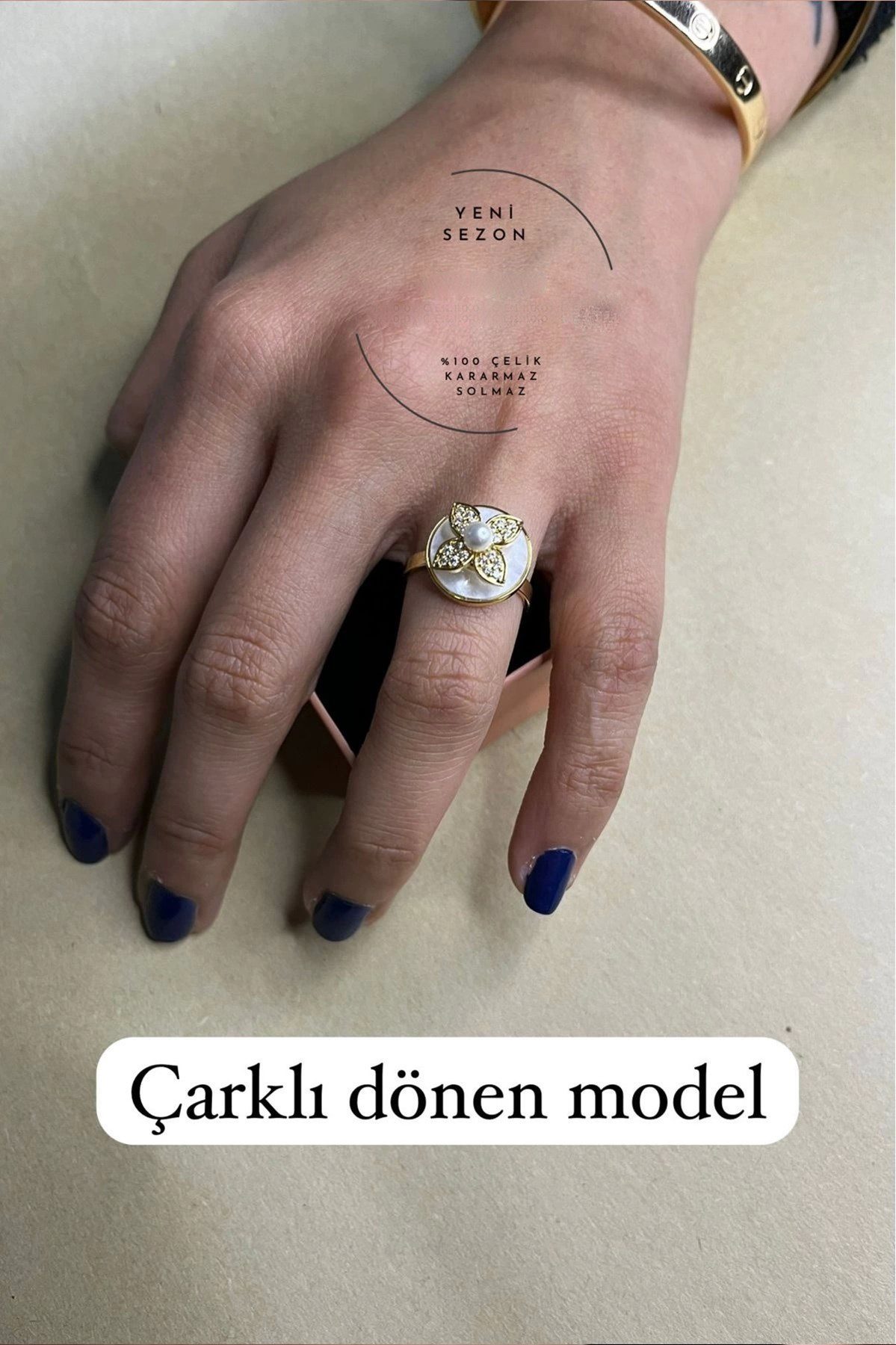 Toptan Altın Renk Dört Kanat Model Zirkon Taşlı Döner Ayarlanabilir Ucu Dönen Stres çelik Yüzük – 3086