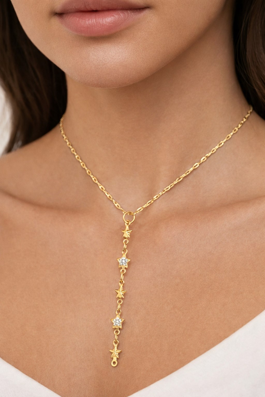 Toptan Altın Renk Dudak Zincir Yıldız Ye Model Yeni Sezon Çelik Kolye – 3823