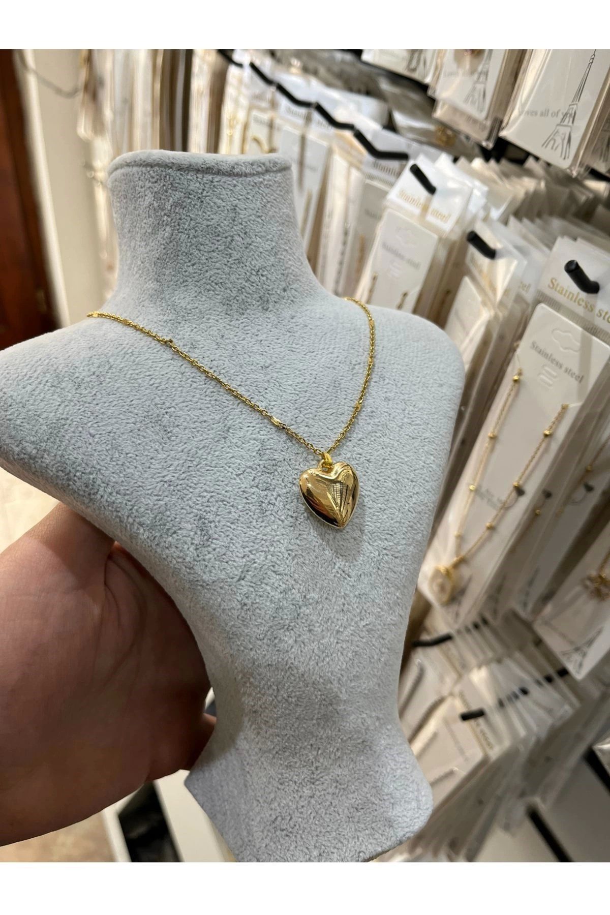 Toptan Altın Renk Ezme Sf Zincir Bombeli Kalp Model Vip Solmaz Kararmaz Çelik Kolye – 3060