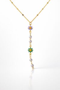 Toptan Altın Renk Ezme Zincir Çiçek İnci Ye Model Çelik Kolye – 3829
