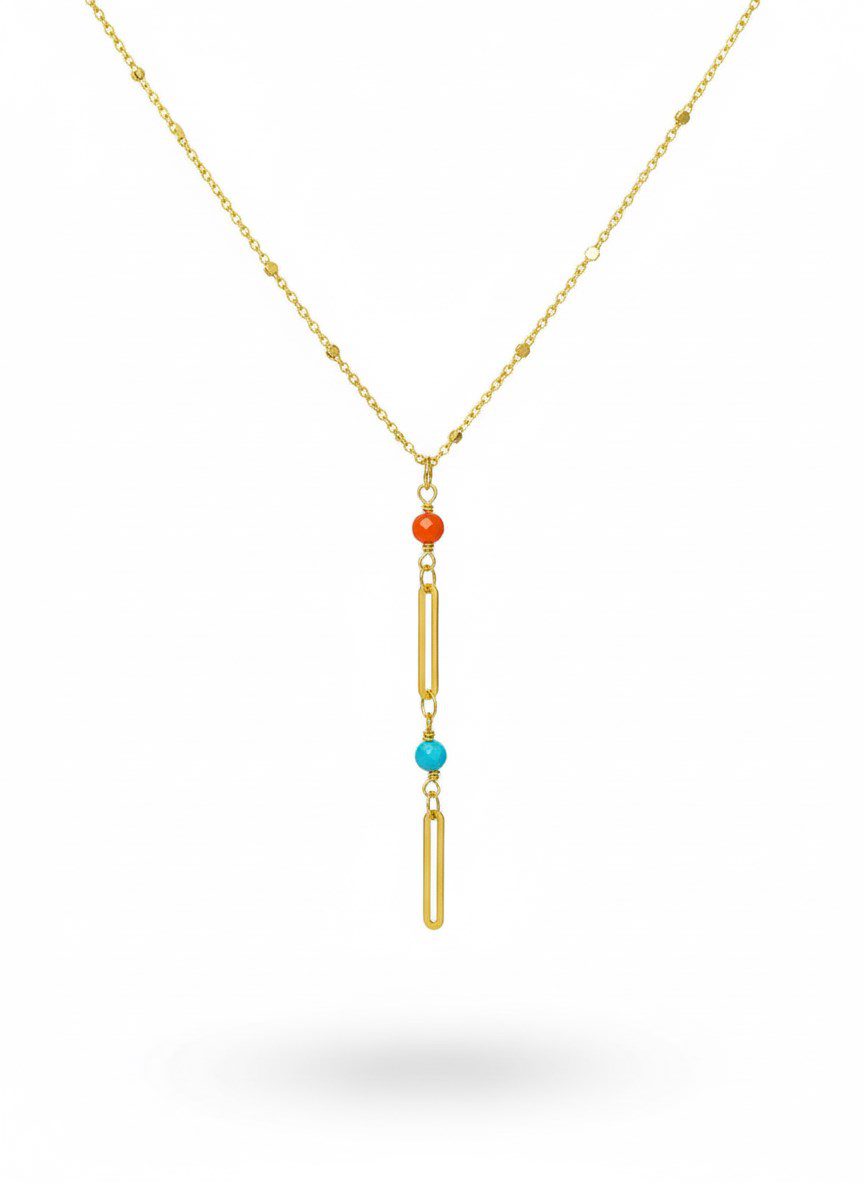 Toptan Altın Renk Ezme Zincir İnci Ataç Ye Model Çelik Kolye – 3833