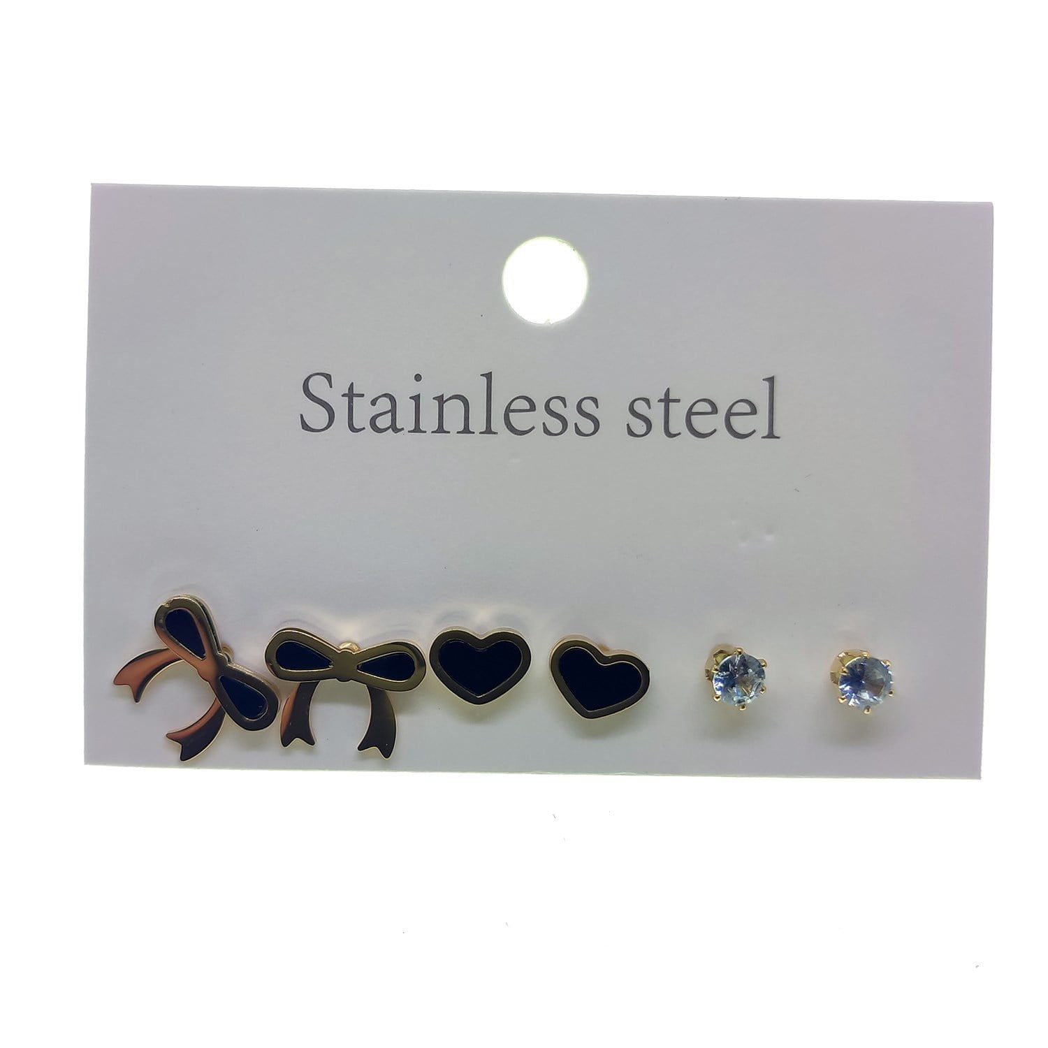 Toptan Altın Renk Fiyonk Kalp Tek Taş Çelik Küpe – 2573