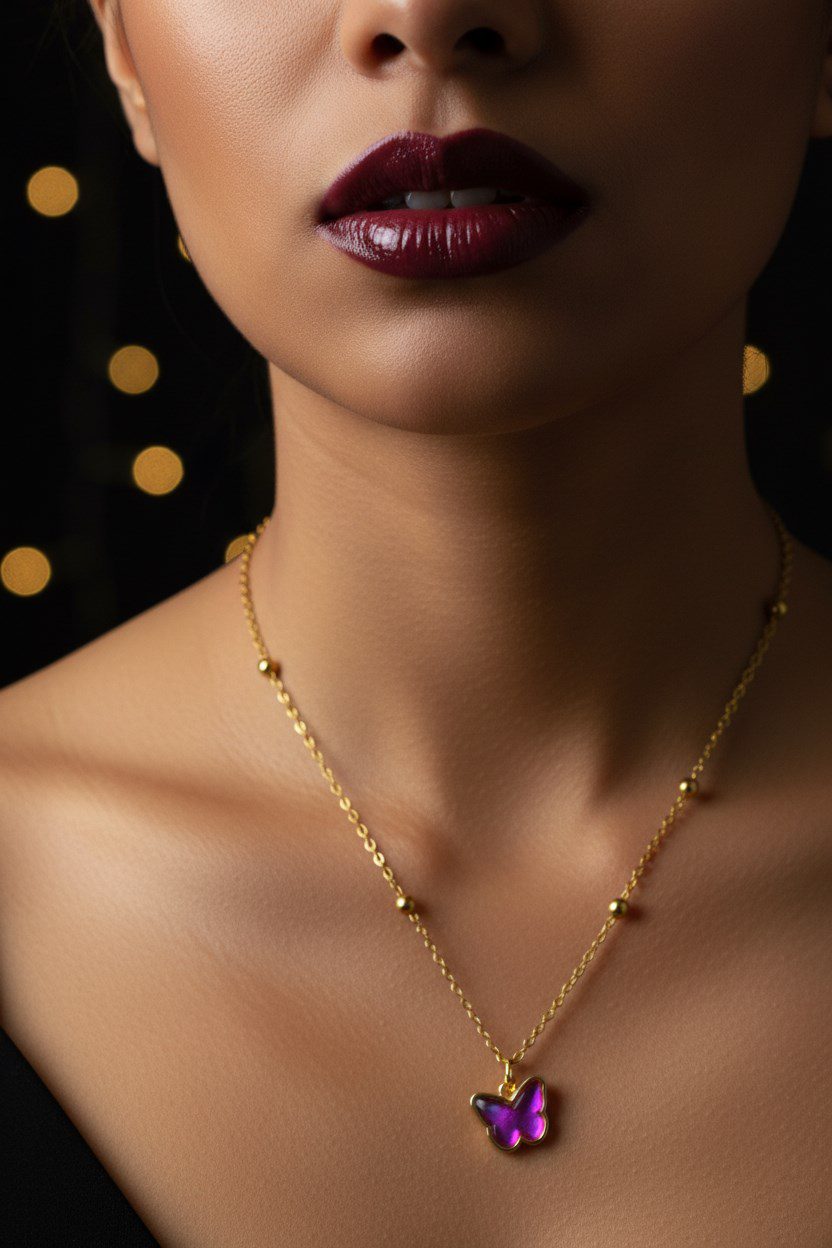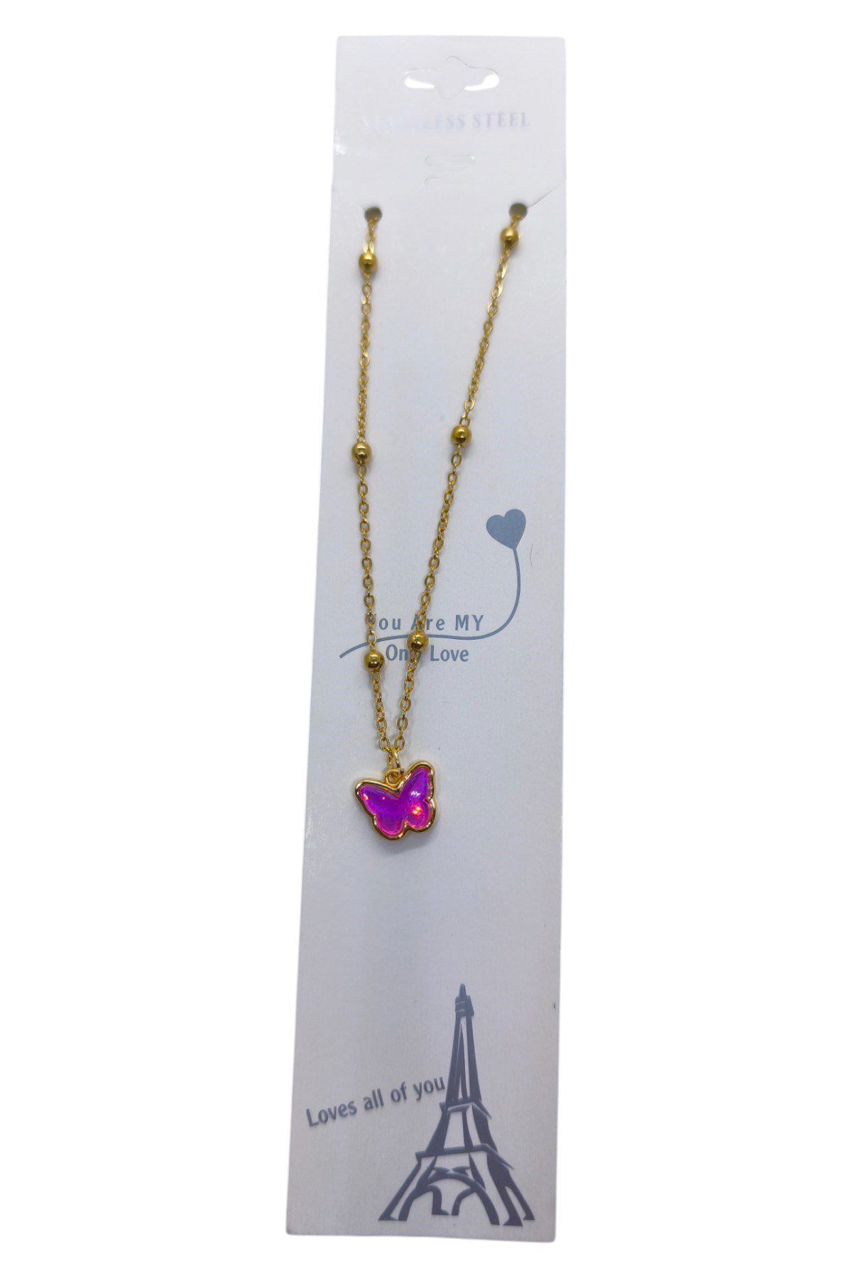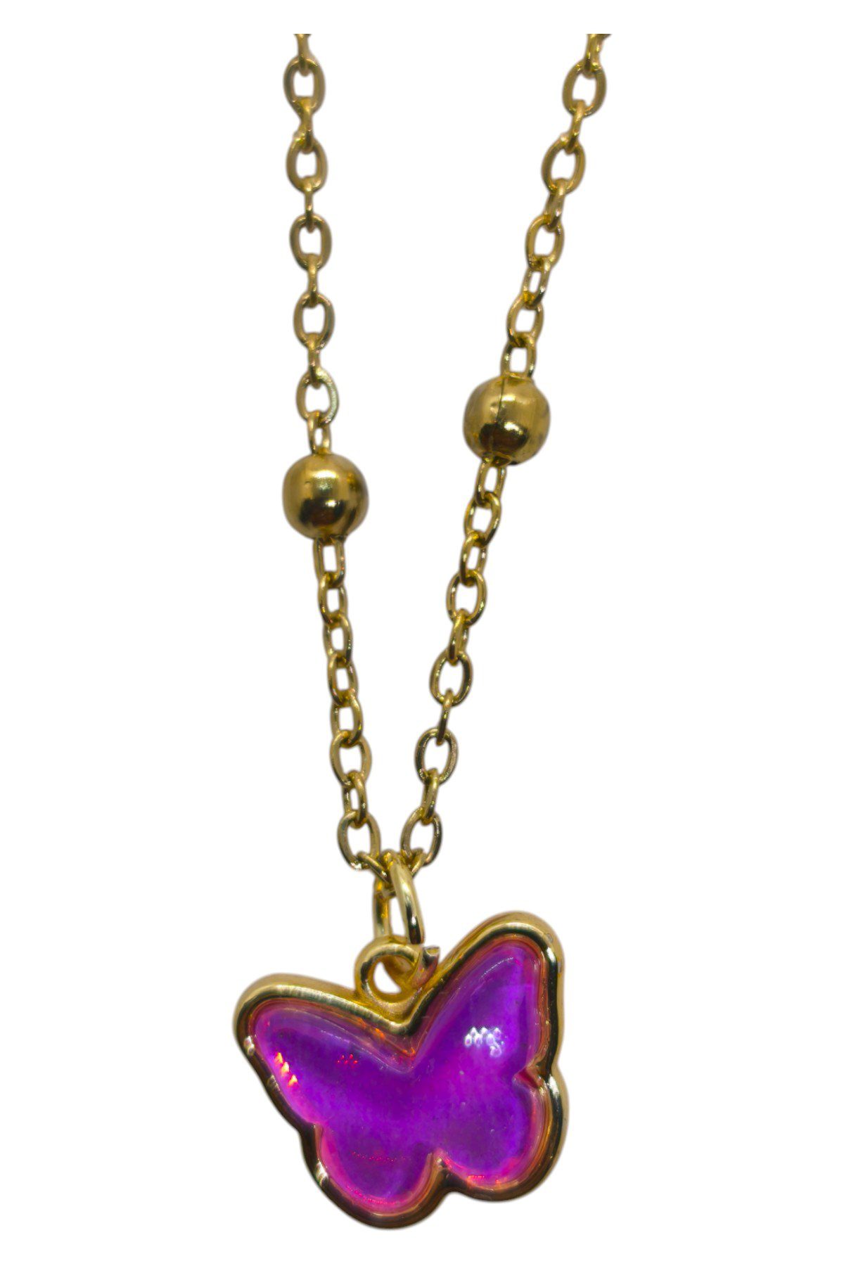 Toptan Altın Renk Fuşe Taş Kelebek Model Top Zincir Çelik Kolye – 3752