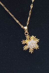 Toptan Altın Renk Hareketli Kar Tanesi Çelik Kolye – 2531
