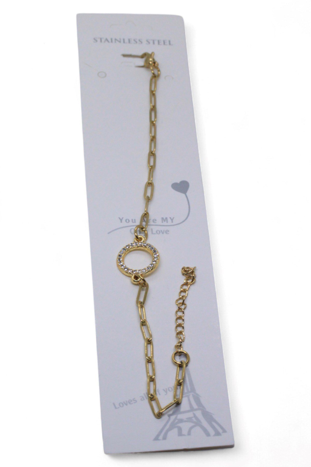 Toptan Altın Renk İçi Boş Yuvarlak Model Ataç Zincir Çelik Bileklik – 3669