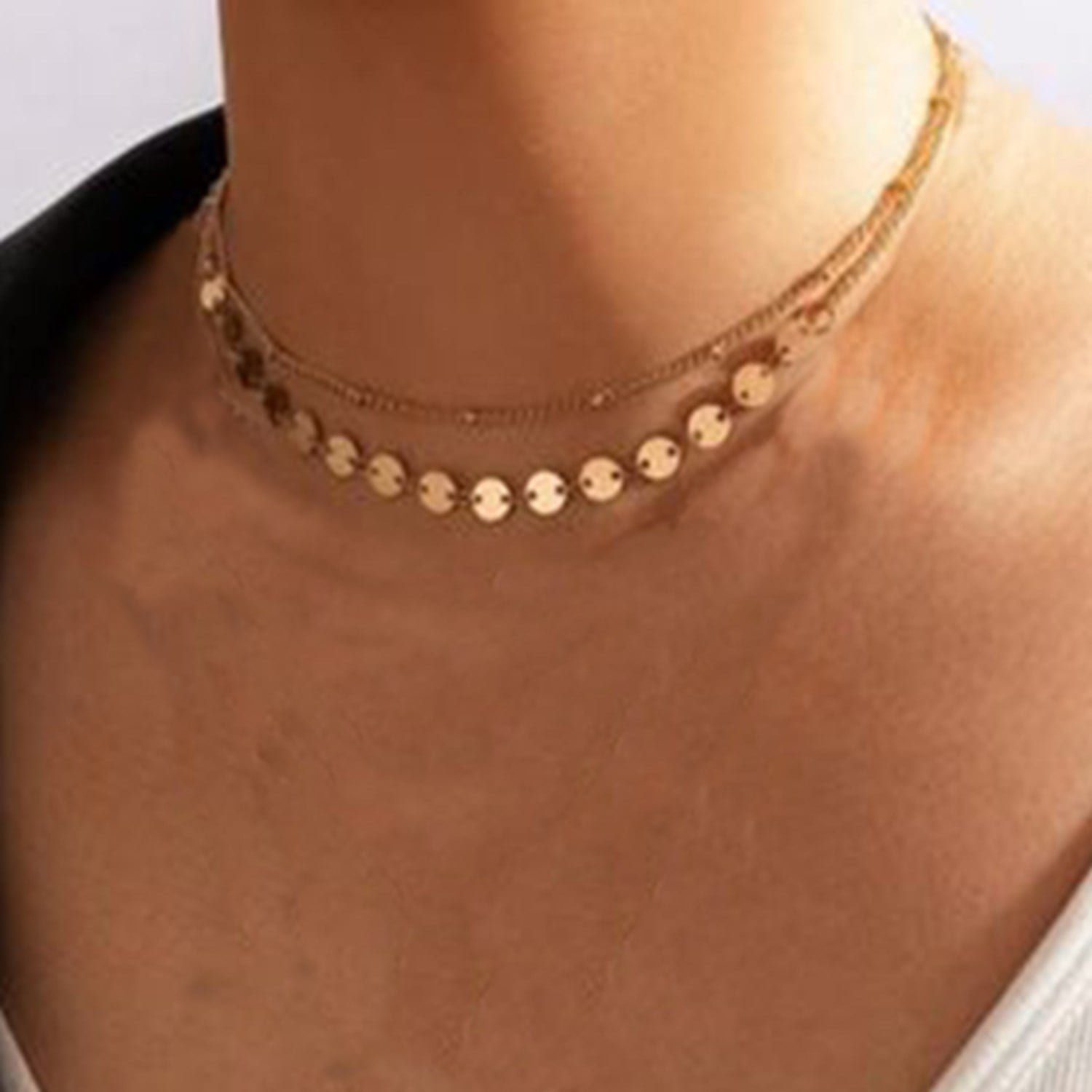 Toptan Altın Renk İk Katmanlı Top Ve Pul Zincir Kolye – 2153