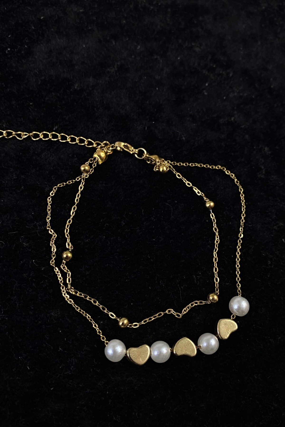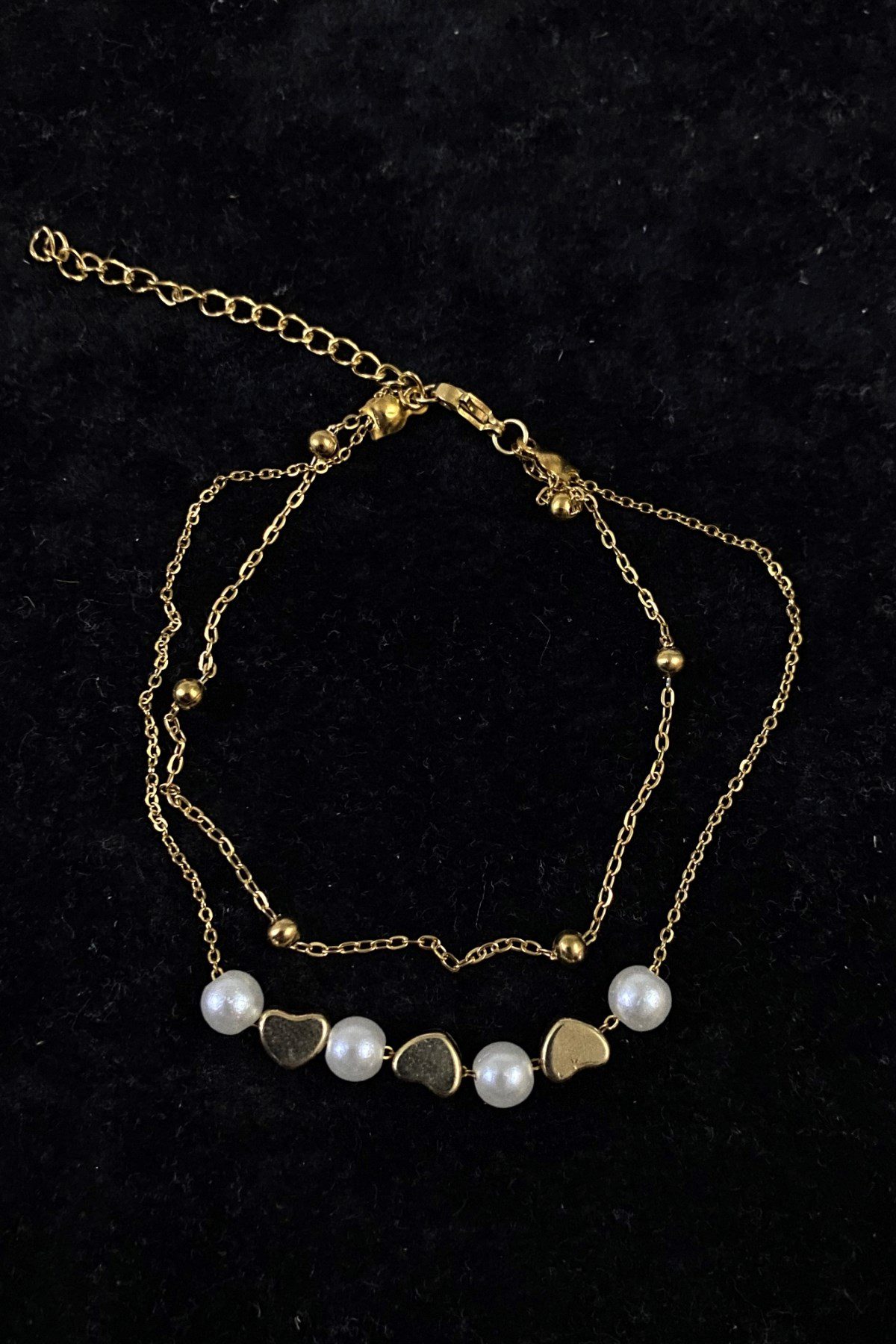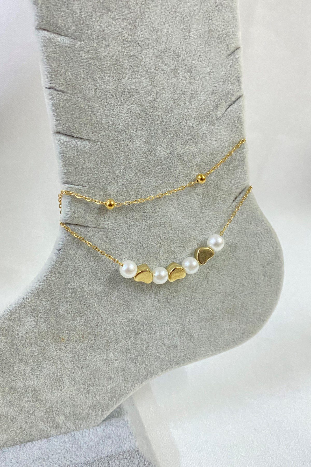 Toptan Altın Renk İnci Kalp Model Top Ve Sf Zincir Çelik Halhal – 3247