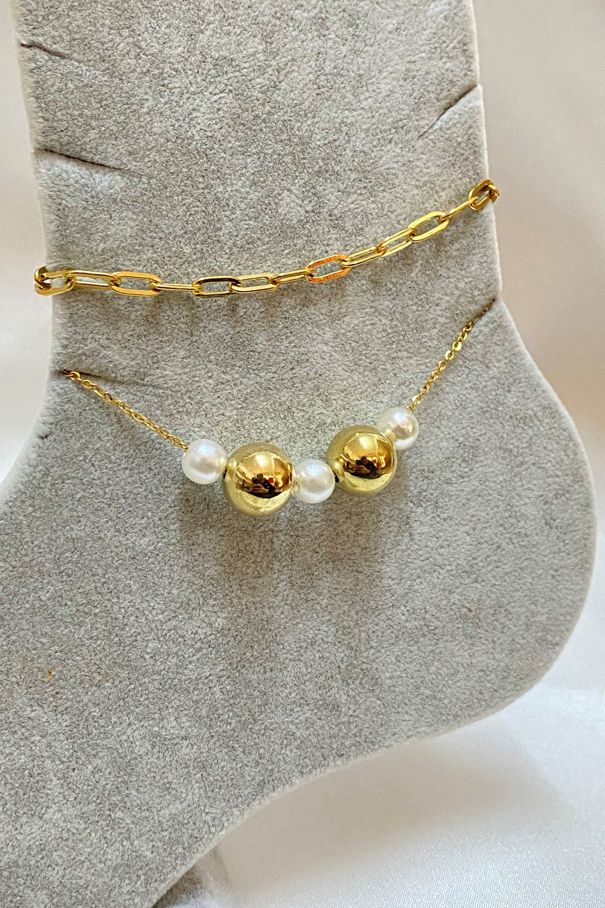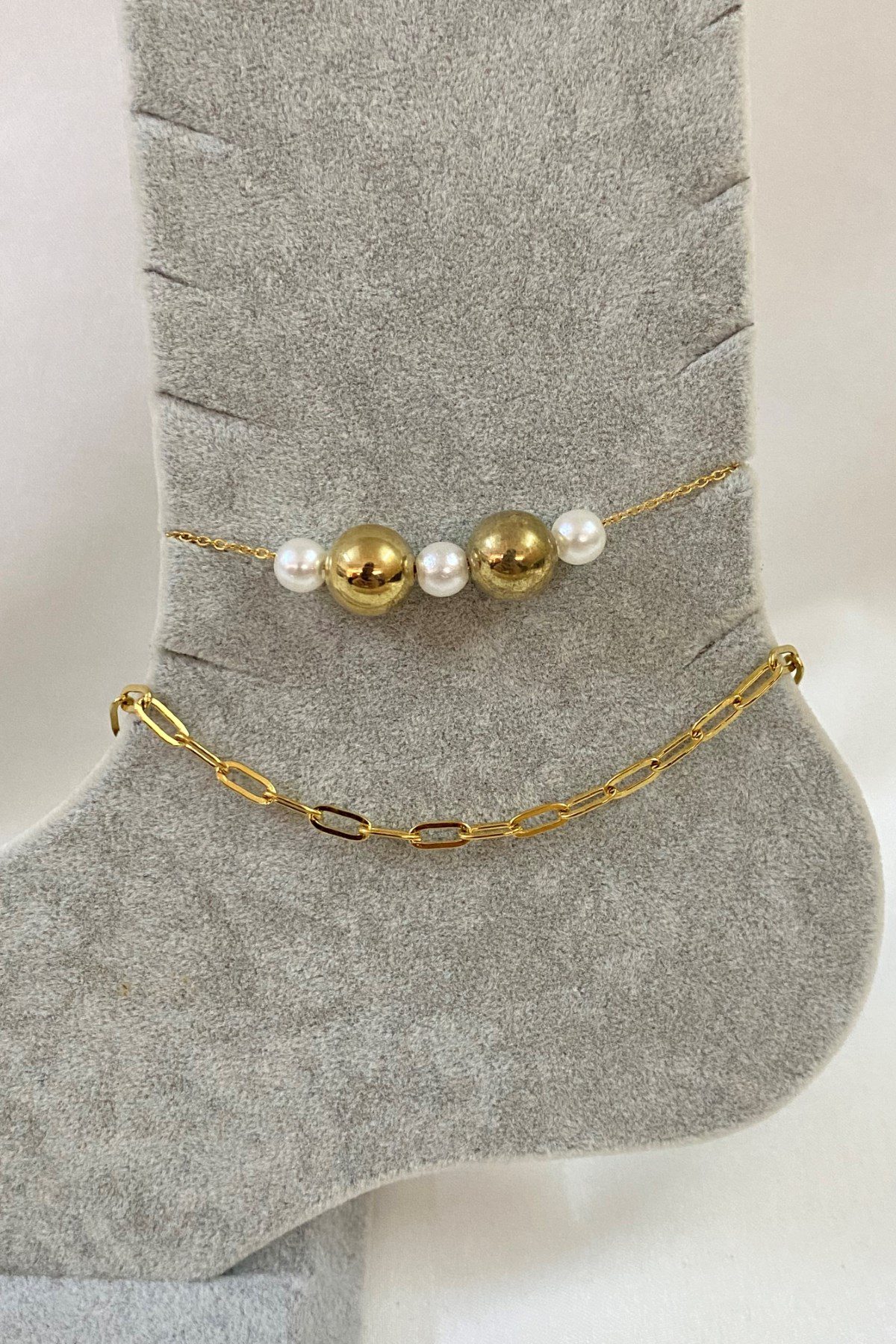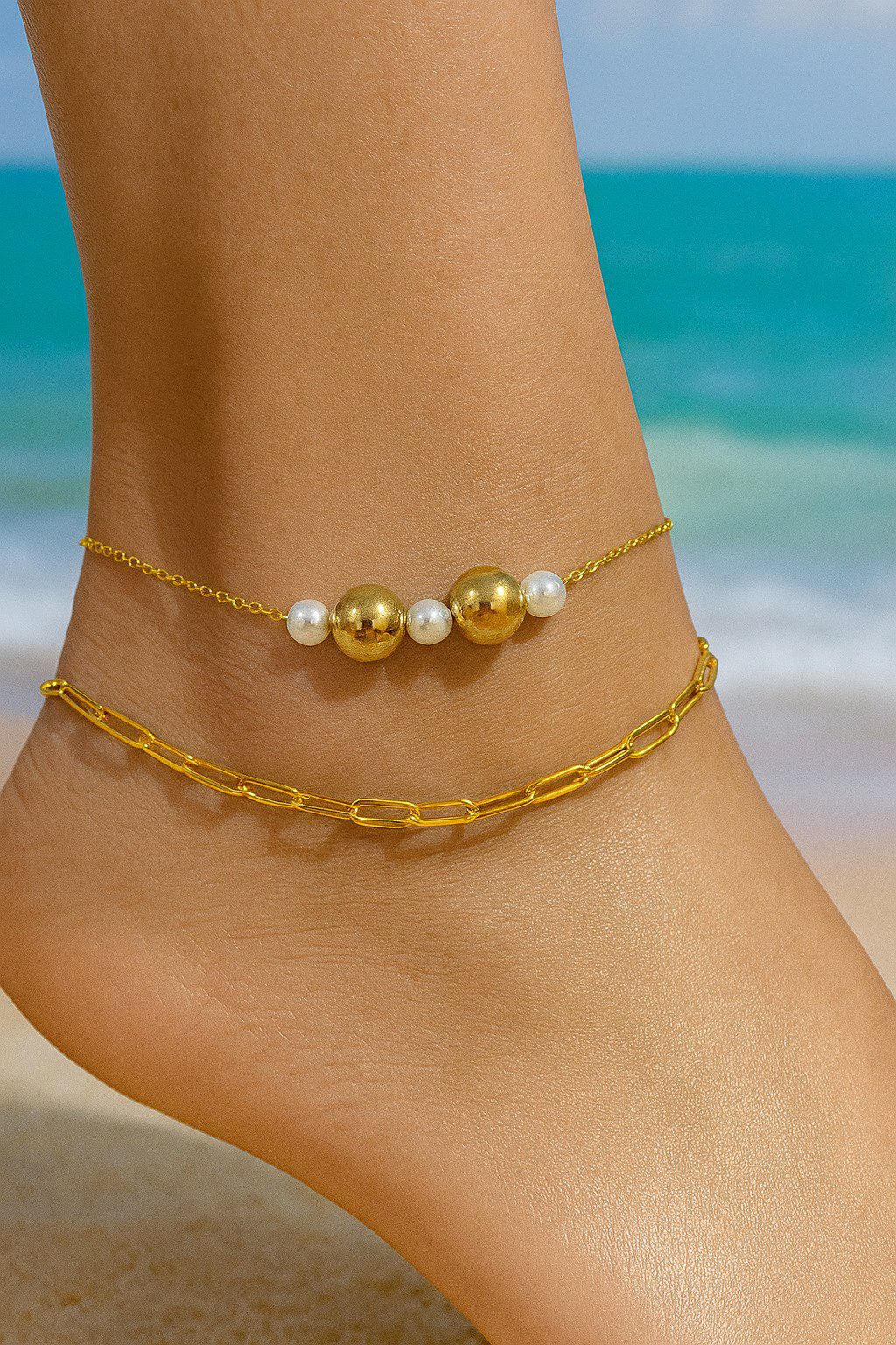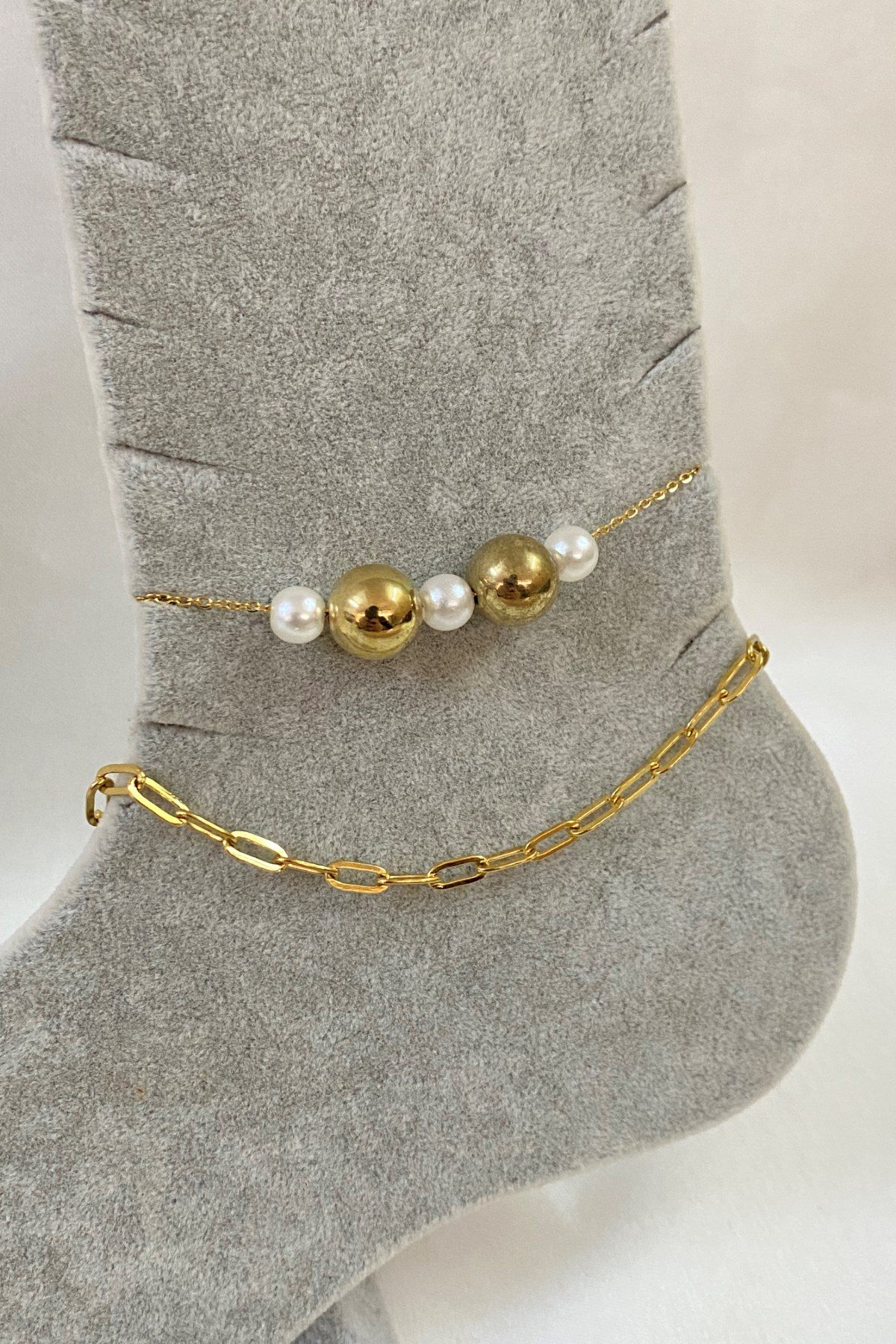 Toptan Altın Renk İnci Küre Model Sf Ve Ezme Zincir Çelik Halhal – 3229