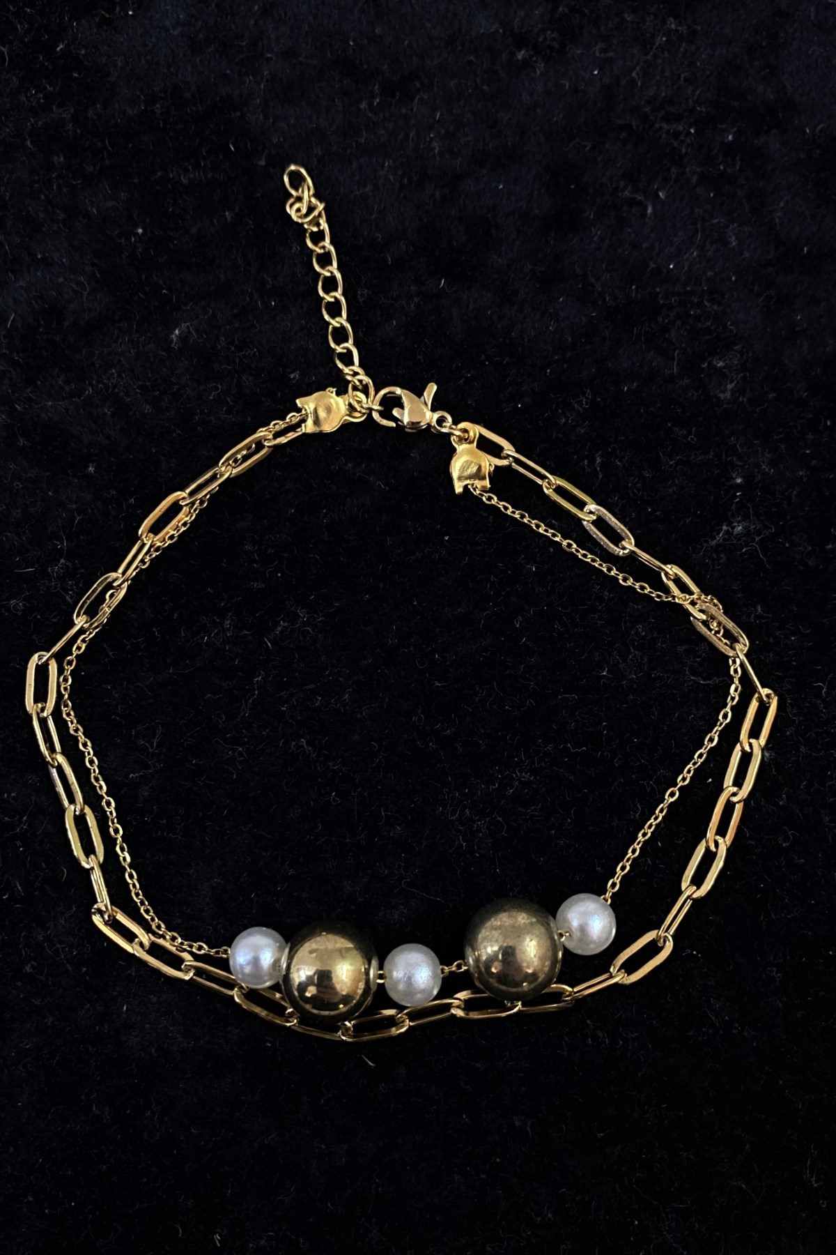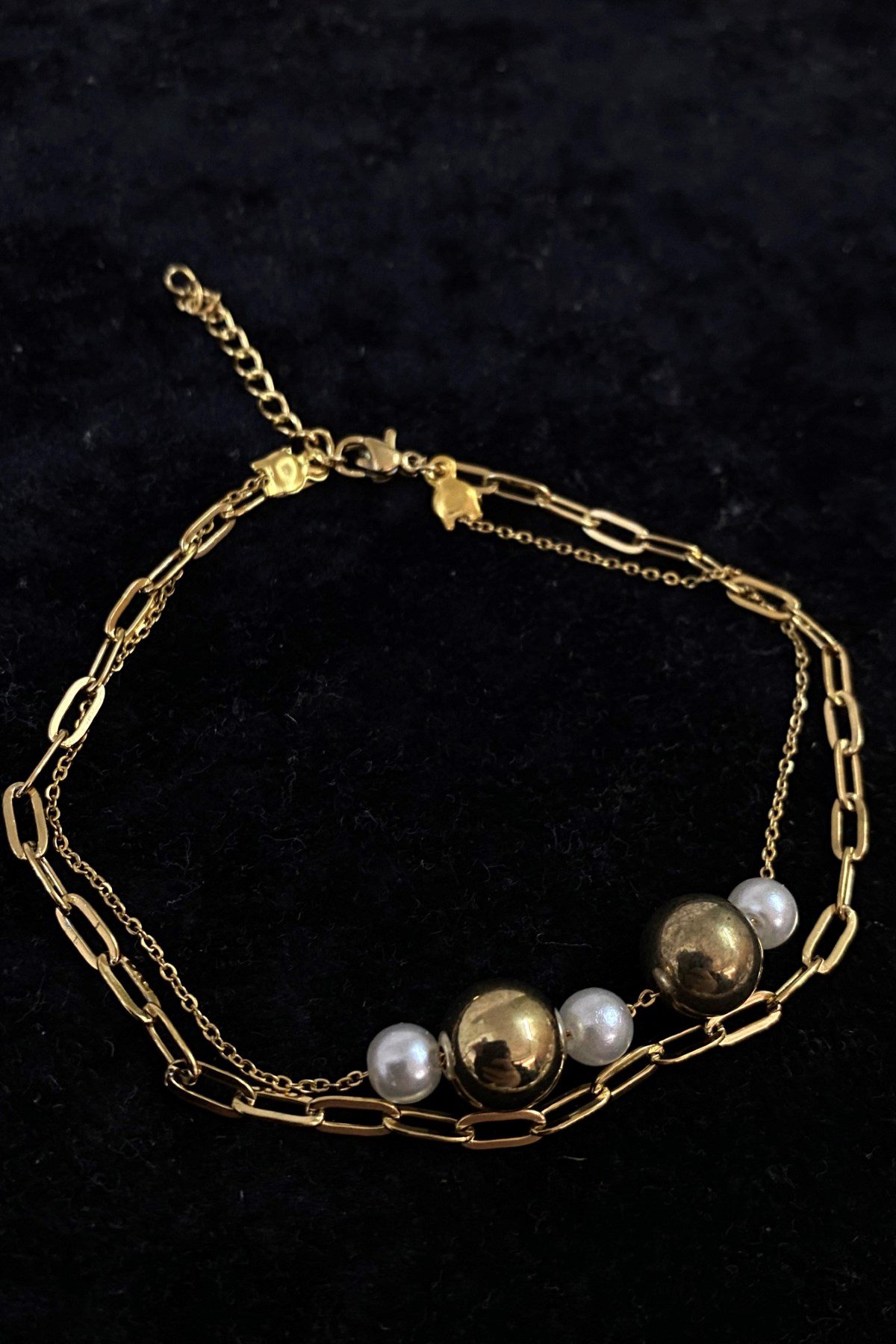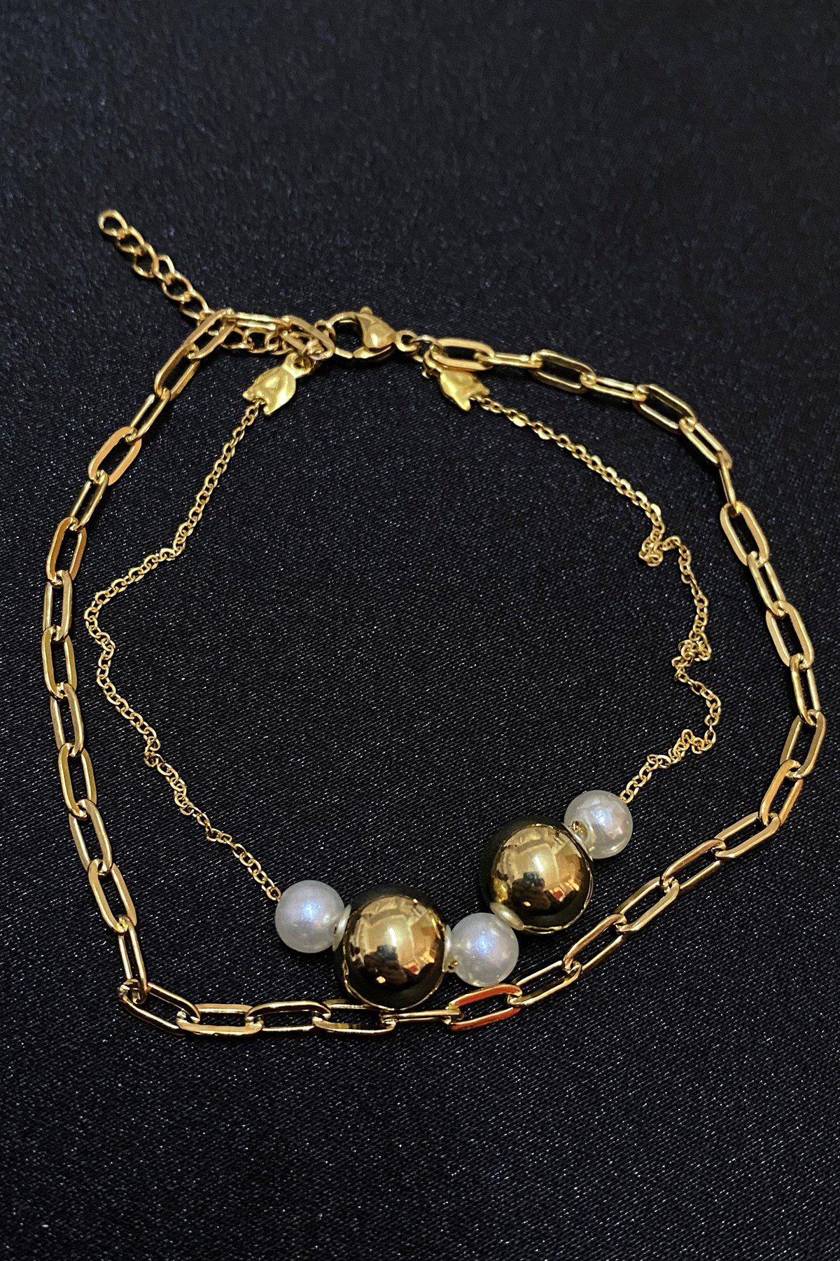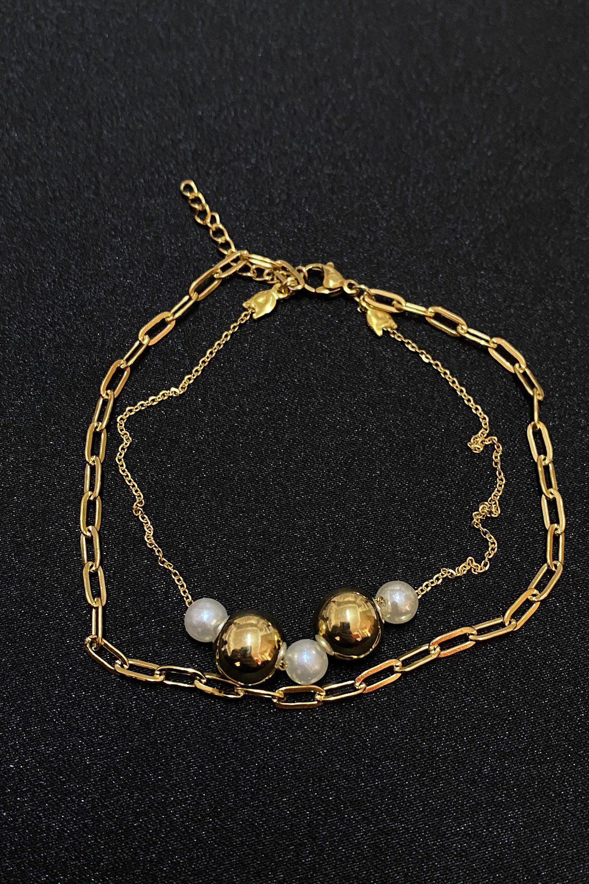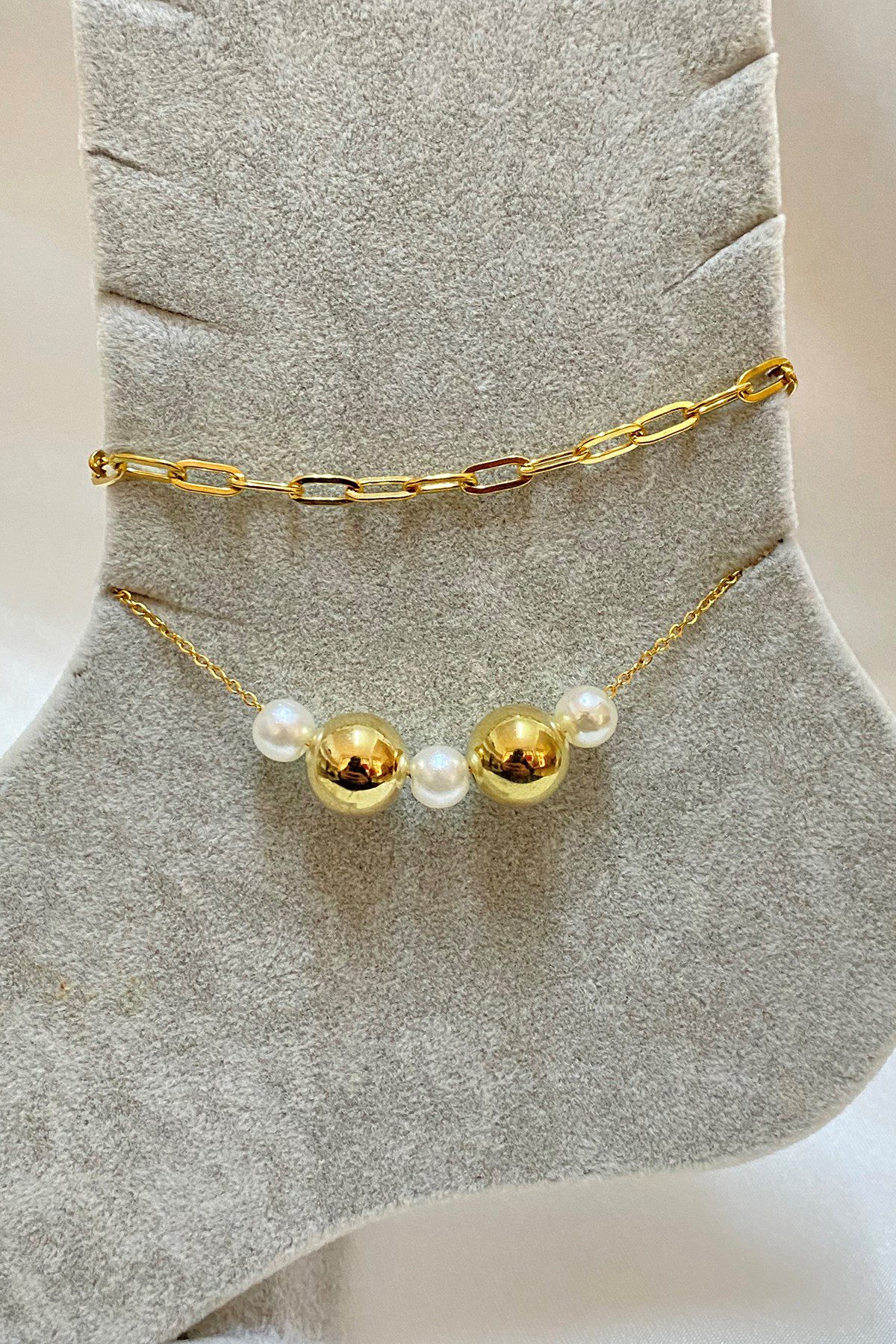 Toptan Altın Renk İnci Küre Model Sf Ve Ezme Zincir Çelik Halhal – 3229