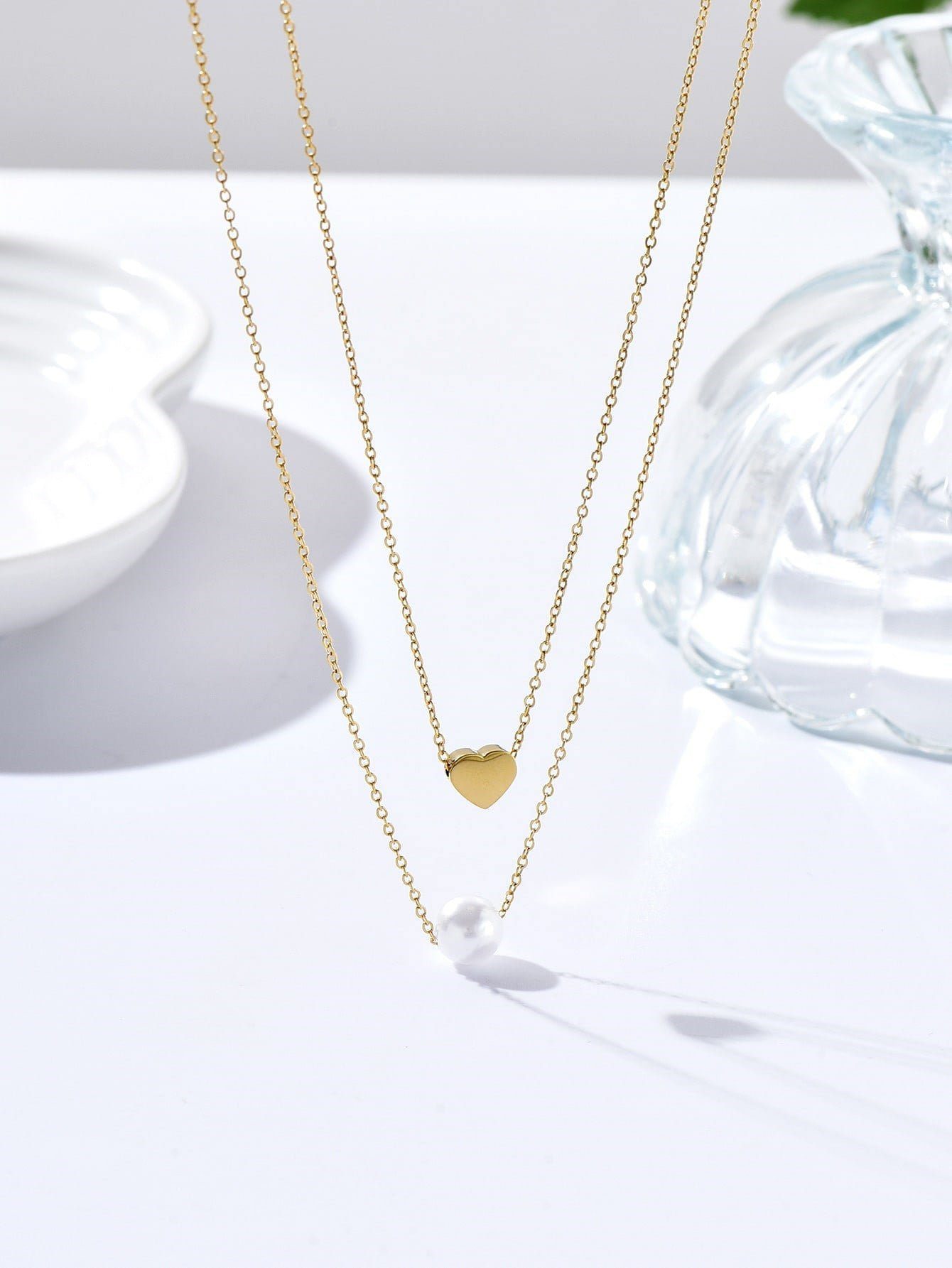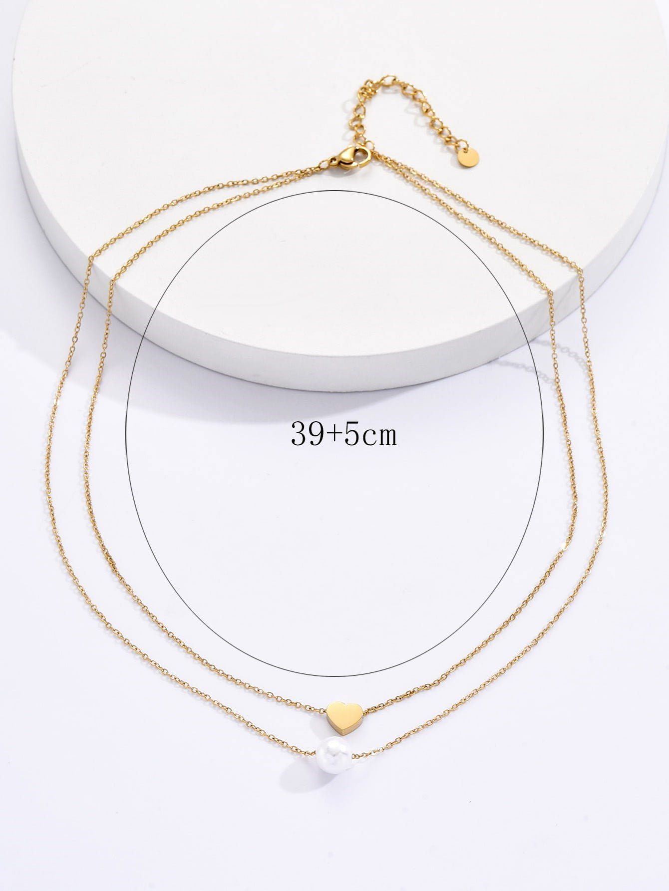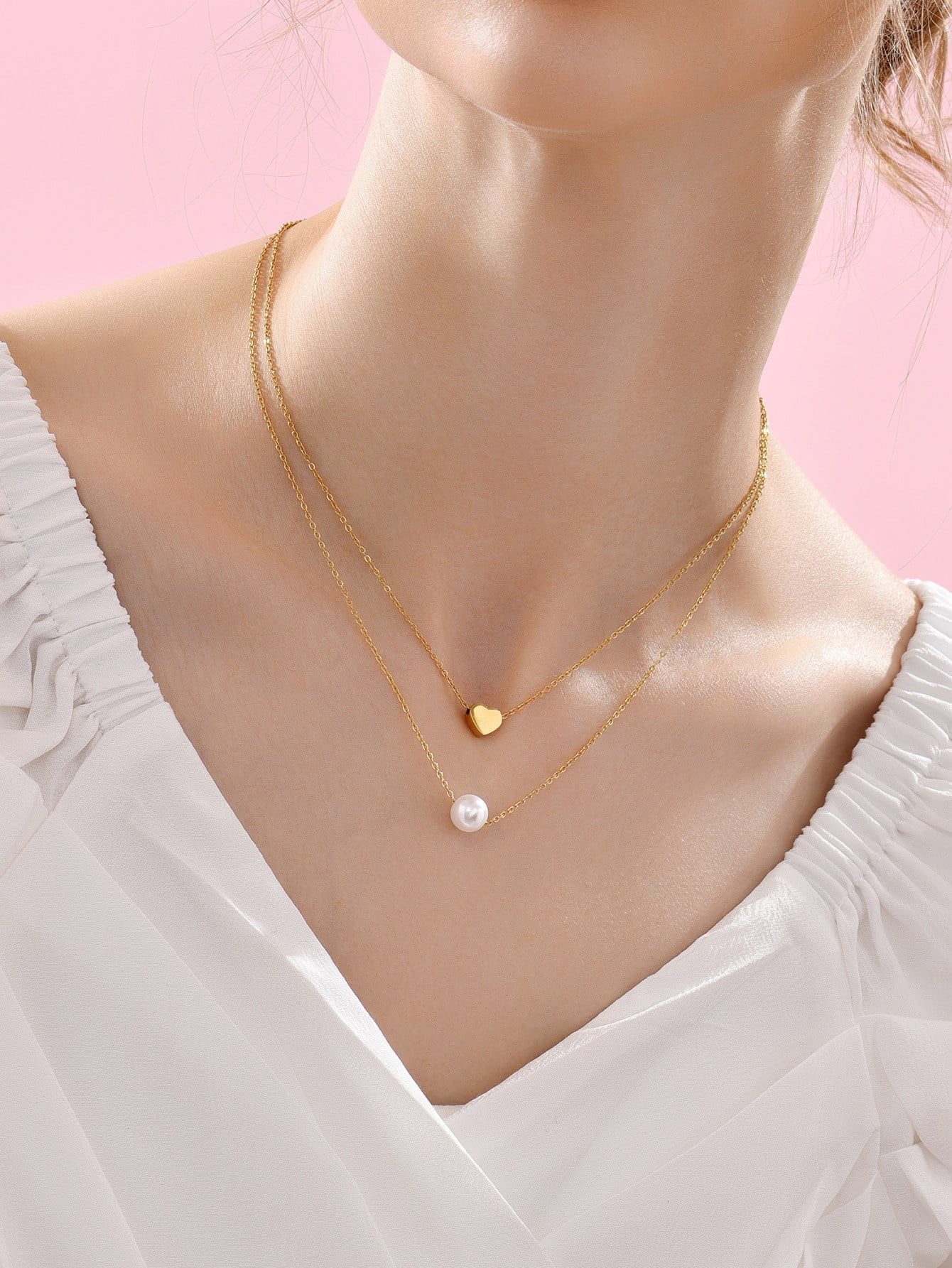 Toptan Altın Renk İnci Ve Kalp Sf Katmanlı Kolye – 2124