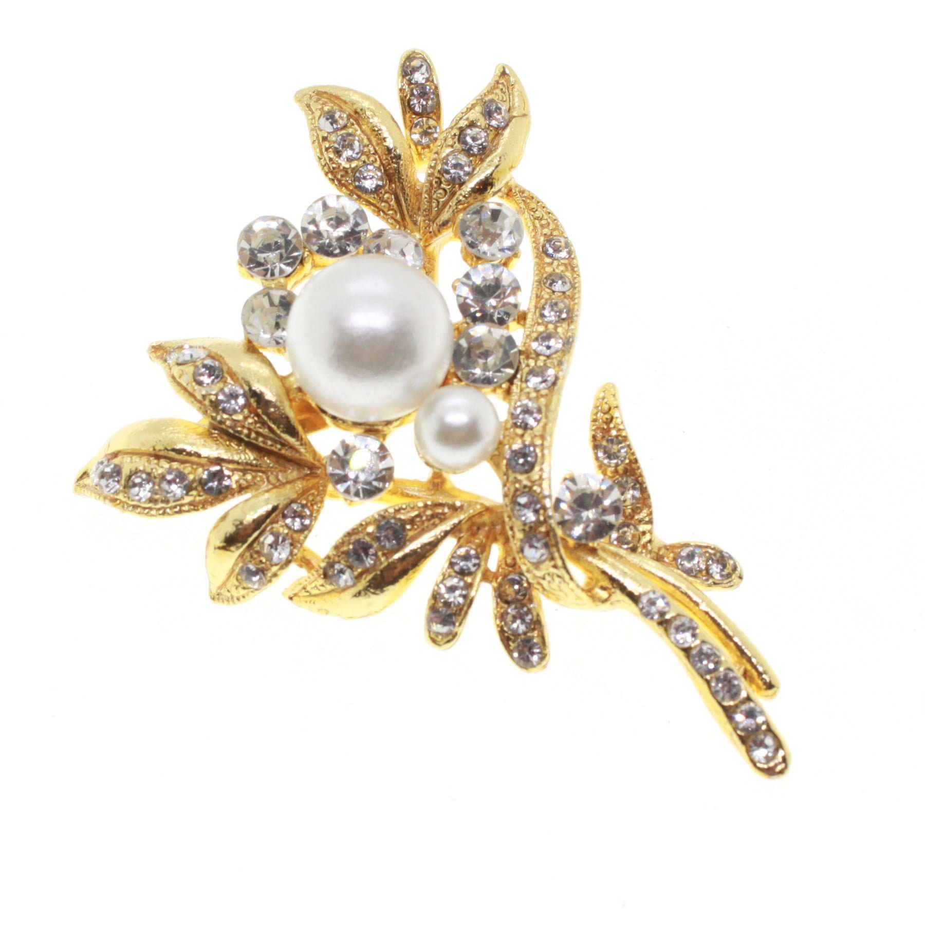 Toptan Altın Renk İnci Yaprak Model Broş – 1725