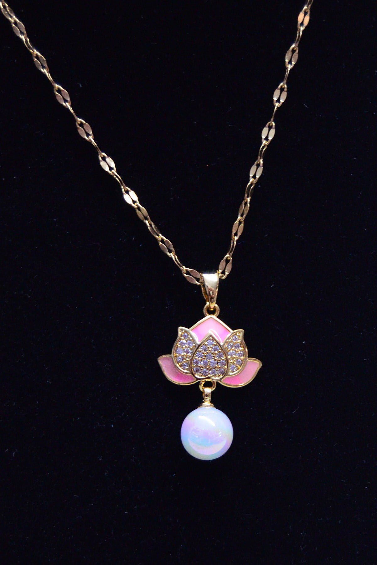 Toptan Altın Renk İncili Çelik Kolye – 2508