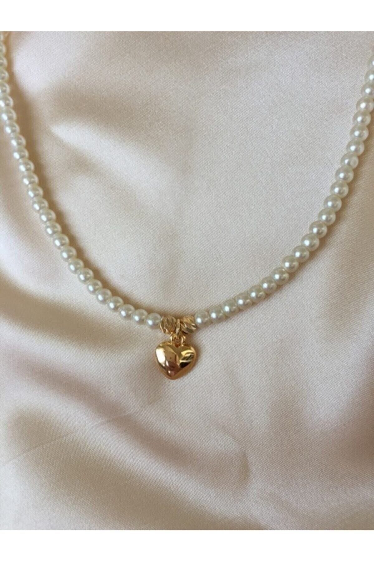 Toptan Altın Renk Incili Gold Kalp Uçlu Kolye – 3126