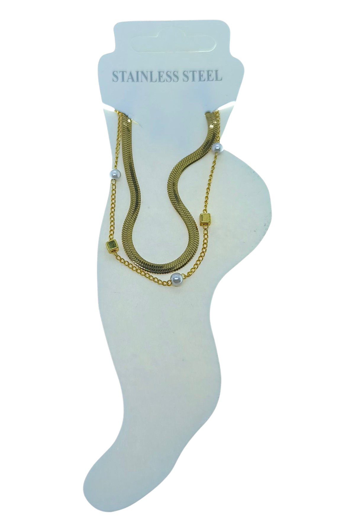 Toptan Altın Renk İtalyan Küp İnci Çelik Halhal – 3494