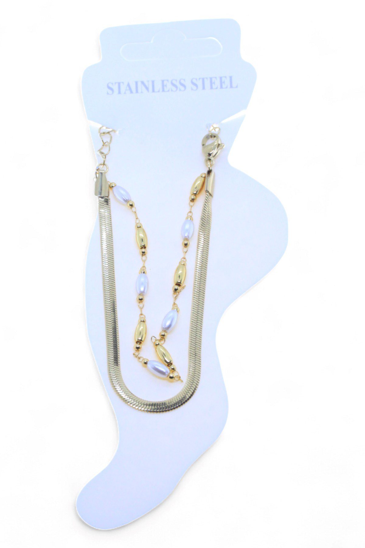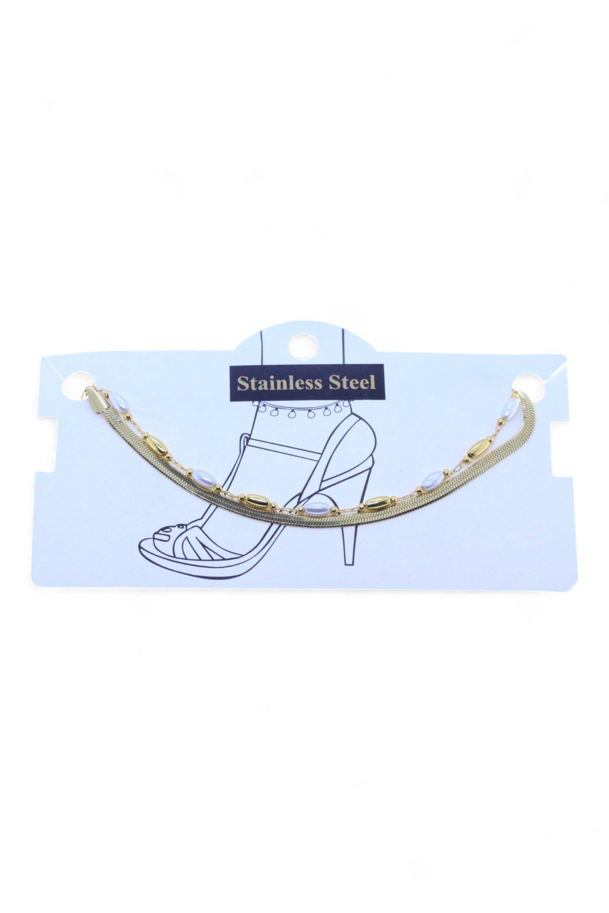 Toptan Altın Renk İtalyan Silindir Beyaz Sarı Çelik Halhal – 3455