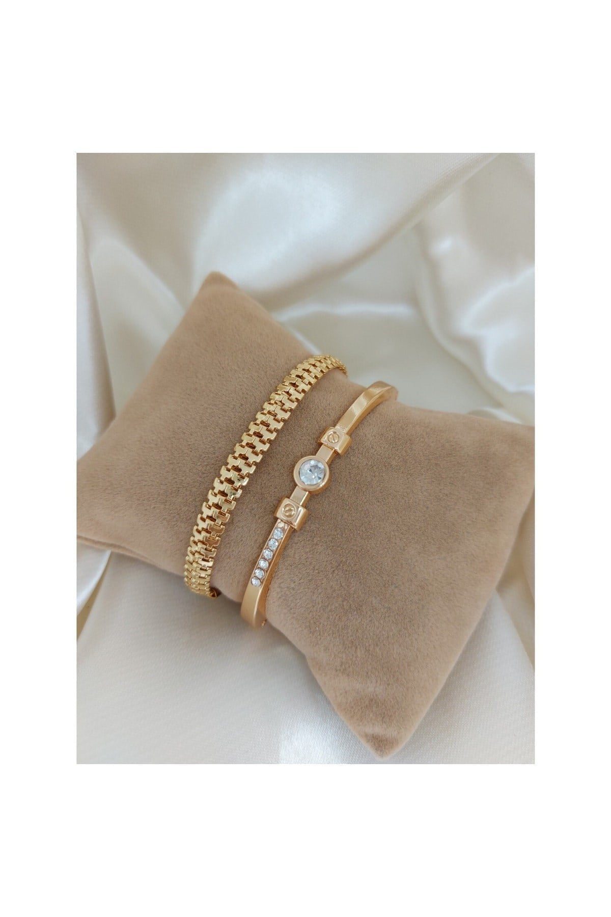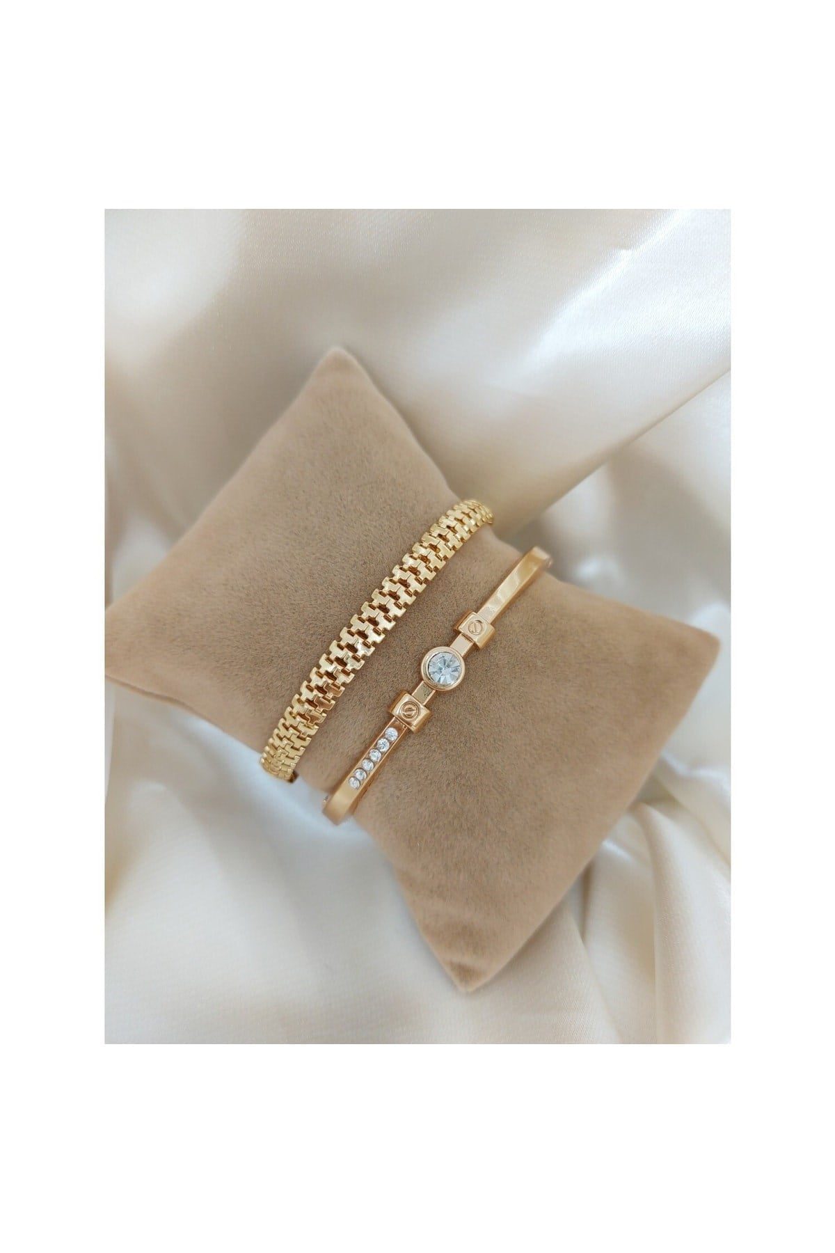 Toptan Altın Renk Kadın Altın Kaplama Zirkon Taşlı Kararmaz Kombin Bileklik – 2404